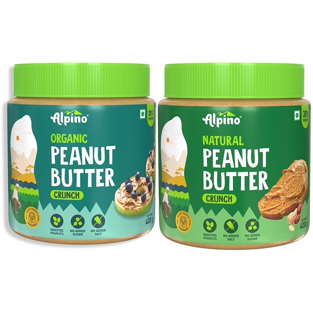 ALPINO Organic Natural Peanut Butter Crunch 400 G | 30% Protein | Made with 100% Organic Peanuts | No Added Sugar & Salt | Plant Based Protein Peanut Butter CrunchyAlpino Peanut Butter is a Nutrient-Rich Food Containing High Levels of Protein Several Vitamins and Dietary Minerals. Regular Consumption of Peanut Butter helps in Weight Loss Lowers the Risk of Cancer and Diabetes Protects Against Alzheimer's Disease and Other Neurodegenerative Diseases. Peanut Butter contains More Unsaturated Fats than Saturated Fats making it a Fat Friendly Food Which Lowers the Risk of Cardiovascular and Coronary Heart Disease. Due to Various Benefits and Source of Everything Healthy Peanut Butter is widely used Against the Malnutrition in Children across the Globe.ALPINO Natural Peanut Butter Crunch 400g - 100% Roasted Peanuts - 30g Protein No Added Sugar & Salt non-GMO Gluten Free Vegan Plant Based Unsweetened Peanut Butter CrunchyAlpino Peanut Butter is a Nutrient-Rich Food Containing High Levels of Protein Several Vitamins and Dietary Minerals. Regular Consumption of Peanut Butter helps in Weight Loss Lowers the Risk of Cancer and Diabetes Protects Against Alzheimer's Disease and Other Neurodegenerative Diseases. Peanut Butter contains More Unsaturated Fats than Saturated Fats making it a Fat Friendly Food Which Lowers the Risk of Cardiovascular and Coronary Heart Disease. Due to Various Benefits and Source of Everything Healthy Peanut Butter is widely used Against the Malnutrition in Children across the Globe.