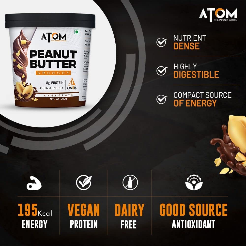 HomeGroceryFlavorsNut & Seed ButterAS-IT-IS Atom Chocolate Peanut c Crunchy 1kg/35.2 Oz | Gluten Free 100% Plant-based Dairy-free Zero Transfats, Zero Cholesterol Made of Fresh, Roasted Peanuts