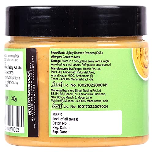 Urban Platter Natural Crunchy Peanut Butter 300g