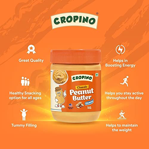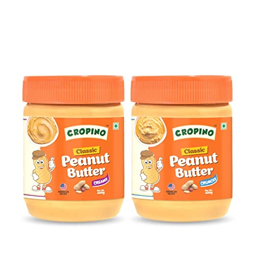 CROPINO Classic Peanut Butter Creamy 400g & Peanut Butter Crunchy 400g | Made with Roasted Peanuts | Gluten Free | 26G Protein | Cholesterol Free | Non GMO | Vegan | Ready to Eat | Pack of 2