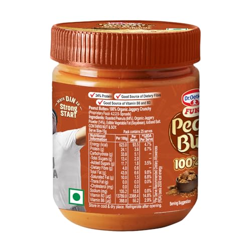 Enjoy the goodness of 100% Organic Jaggery with best quality Peanuts roasted to perfection for a lip-smacking taste. Made with unprocessed Organic Jaggery which is rich in minerals & antioxidants and aids natural detoxification our PB+ 100% Organic Jaggery is filled with nutty-goodness in every spoonful! Ideal for fitness enthusiasts looking for tasty-goodness and with higher need for protein and essential minerals. Make a STRONG START Every Day with FunFoods Peanut Butter.