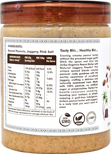 Savour the rich nutty flavour of JIVA's Organic Crunchy Peanut Butter a delightful treat for your taste buds. Made from premium-quality peanuts this crunchy delight offers a perfect blend of texture and taste. With a satisfying crunch in every bite it's a guilt-free indulgence that's not only delicious but also packed with nutrients. Enjoy it straight from the jar spread it on toast or crackers or incorporate it into your favourite recipes for a delightful twist. JIVA's Organic Crunchy Peanut Butter is a wholesome and versatile addition to your pantry ensuring a burst of flavour in every spoonful. Indulge in this 28.35g (1oz) jar and experience the goodness of organic peanuts like never before.