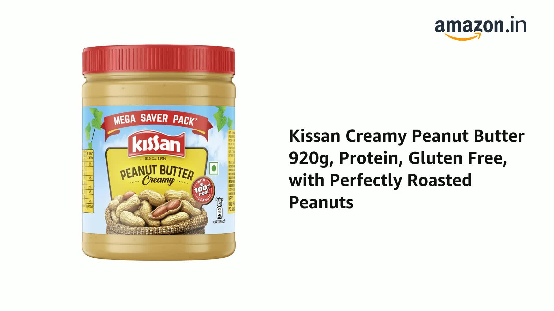 Protein is very important for normal growth and development of children building muscles & maintaining bones body repair & recovery - all of which helps keep our body stay strong from within. So go ahead and enjoy the goodness of high protein Peanut Butter! Why Kissan Creamy Peanut Butter 920 gm? Kissan Peanut Butter with 100% real peanuts handpicked from the farms of Gujarat is a rich source of protein. An ideal option for mothers looking for protein-based foods for their children. The product has no added colours and flavours. There is no preservative in Kissan Peanut Butter. 1 serving of Kissan Peanut Butter (30g) has as much quantity of protein as 1 bowl of dal (30 g uncooked dal) or a handful of Almonds (40 g) or 1 glass of cowâs milk (200 ml) or 1 egg (50 g). With Protein constituting 25% of Peanut butter it is one of the richest plant-based protein sources available. Known as the nutrient that is the âbuilding block of the bodyâ/nutrient that âbuilds usâ. Why should you trust Kissan for your Creamy Peanut Butter needs? Started in 1934; Kissan is a popular brand in India. Kissan is more than just peanut butter jams ketchups and squashes. Itâs all about kids eating happily & growing up happily. Kissan brings you household products that enhance the healthiness and taste of your drab meals looking for a richer source of nutrients.