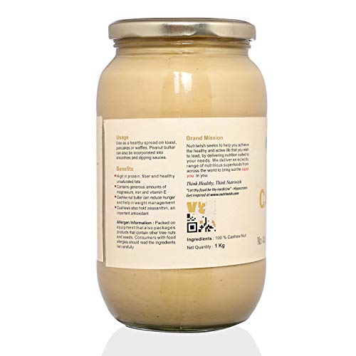 Nutriwish Cashewnut Butter Bottle 1 Kg - Unsweetened No Added Oil No Added Sugar No Added Salt 100% Natural