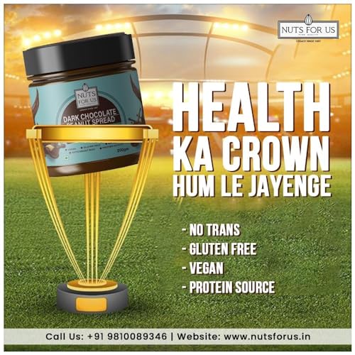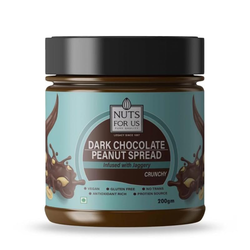 Nuts For Us Dark Chocolate Peanut Spread Butter infused with raw whole jaggery. This 200g jar is packed with flavor and nutrition making it the perfect addition to your pantry. With a crunchy texture and a plant-based formula this spread is a fantastic source of protein fiber and vital vitamins and minerals. Enjoy it drizzled over pancakes waffles or crepes or spread it on toast roti or biscuits. It's also perfect as a dip for fruits nuts and cookies or blended into milkshakes. Crafted without any artificial sweeteners palm oil or preservatives this vegan dairy-free and sugar-free spread is made from 100% natural ingredients. Satisfy your cravings guilt-free with this deliciously wholesome treat!