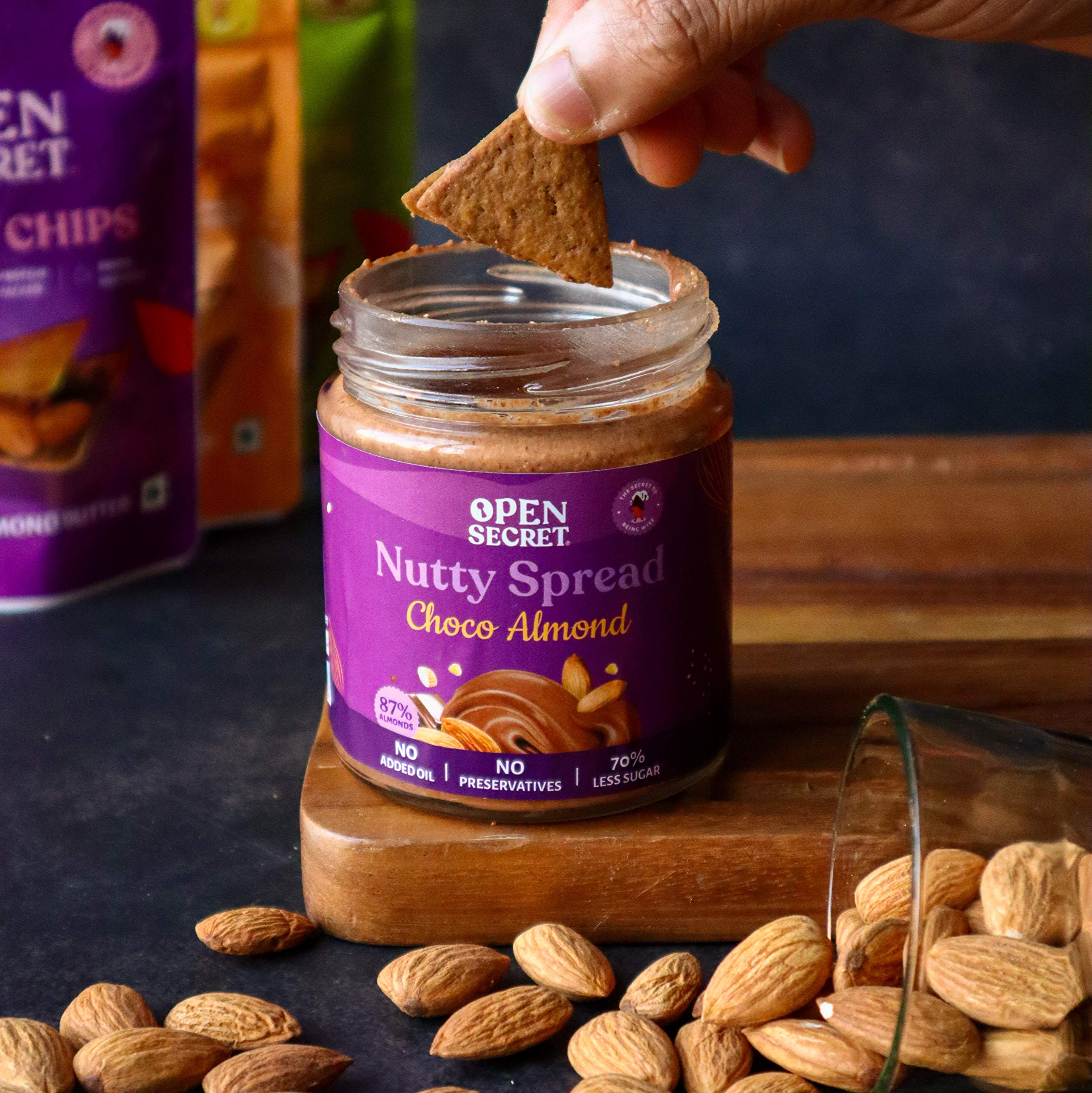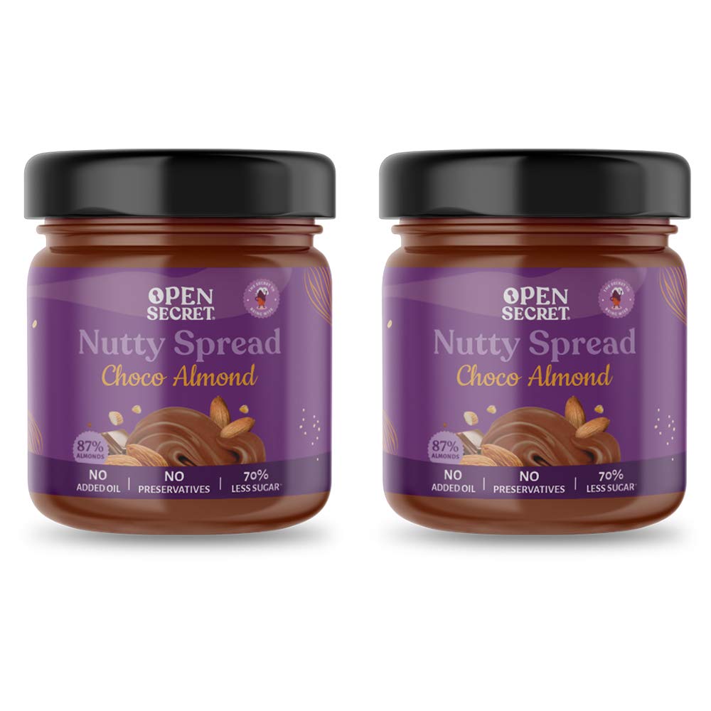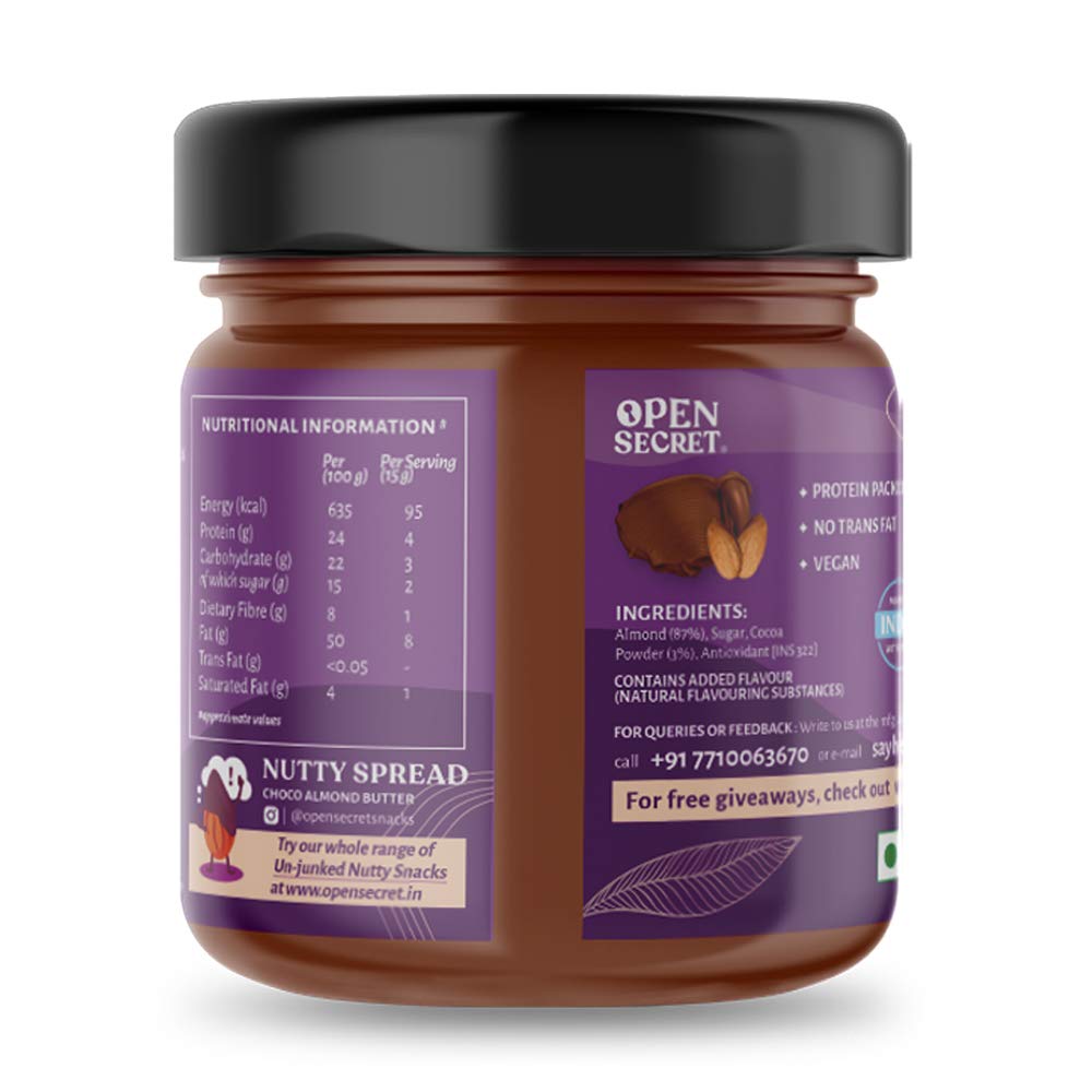 Open Secret Choco Almond Butter 87% Almonds No Added Oil No Preservatives 70% Less Sugar | Healthy Gluten Free Chocolate Bread Spread | Breakfast | 2 Jars (175 gm each)