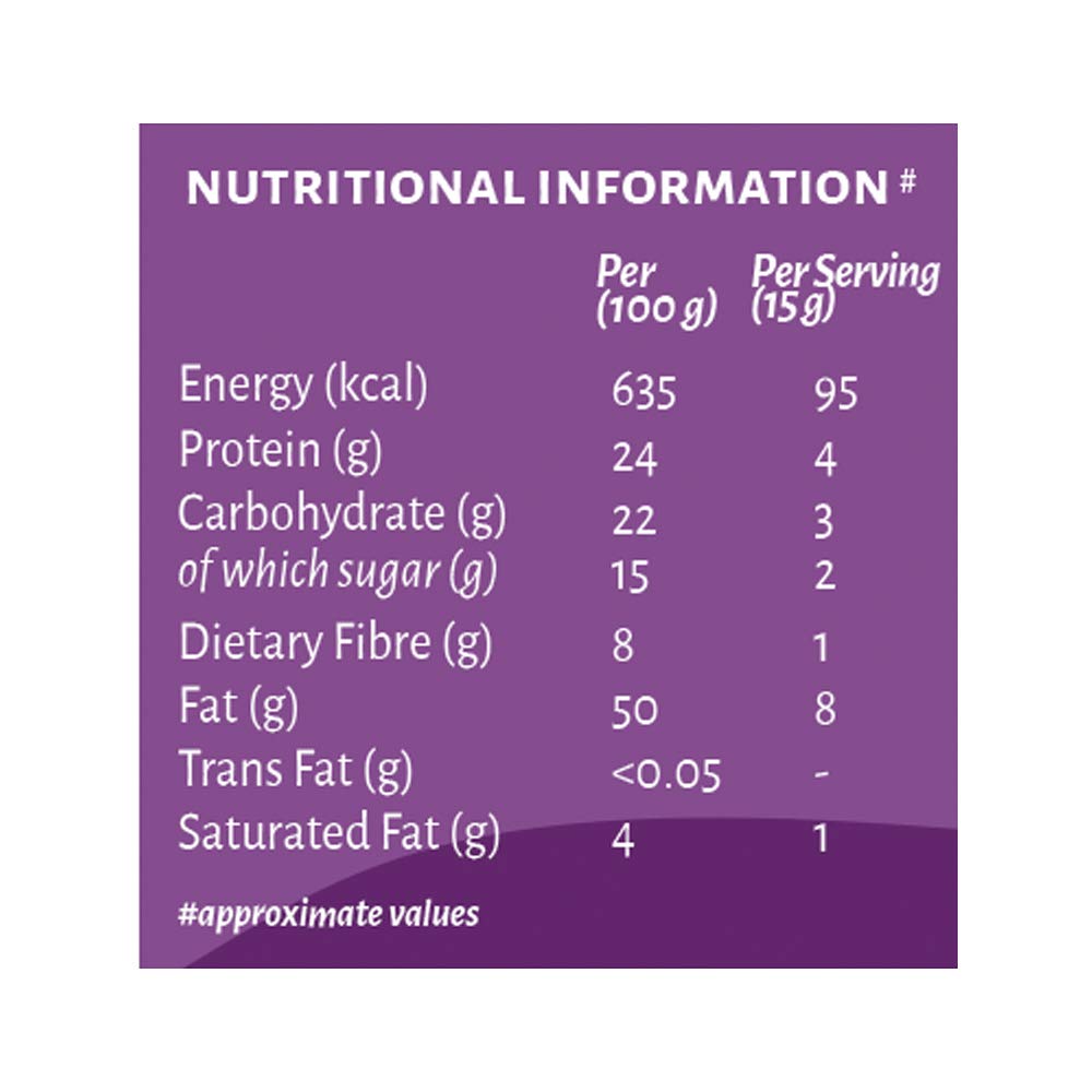 INGREDIENTS : 87% Almonds | 70% less Sugar I No Added Oil | No Preservatives | Protein packed | No Trans Fat | Vegan | Dairy Free | Gluten Free | Vegetarian