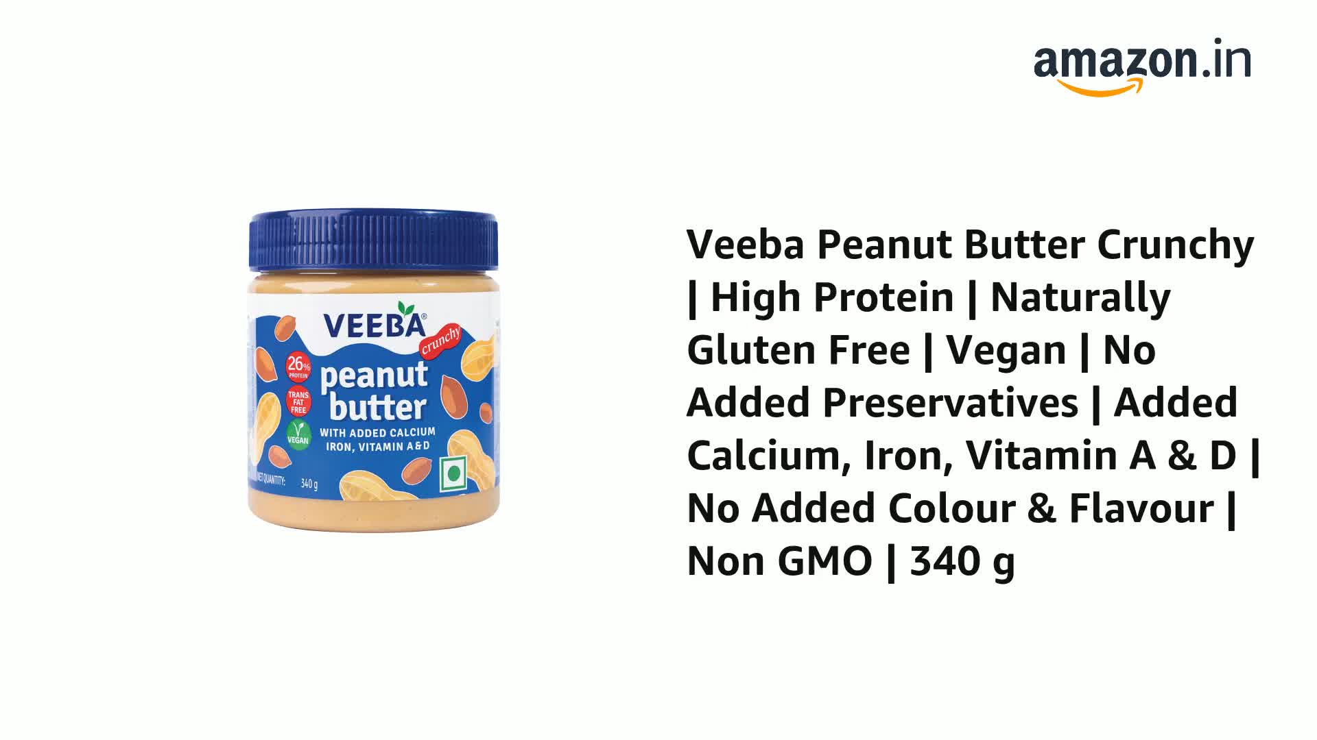 Veeba peanut butter creamy is loaded with proteins. Power pack you day with the nutritious and tasty peanut butter fortified with calcium iron vitamin a and d. Contains 91 percent roasted peanuts.