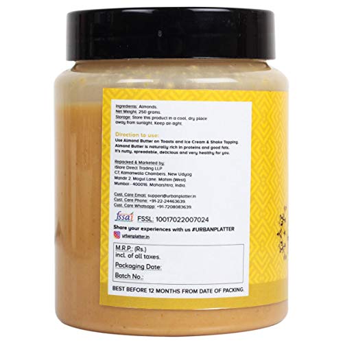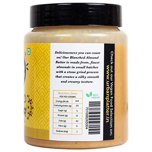 Blanched Almond Butter 250g / 8.8oz [All Natural No Hydrogenated Oil No ]Deliciousness you can count on! Our Blanched Almond is made from the finest almonds in small batches with a stone grind process that creates a silky smooth and creamy texture.Almond butter is naturally rich in protein and good fats. It's nutty delicious spreadable and very healthy for you. No Hydrogenated oil. No . Contains NO Sugar (Unsweetened). Use Almond Butter on toasts parathas baking IceCream and shake topgs or eat as it is. - Simply Good Food! :)