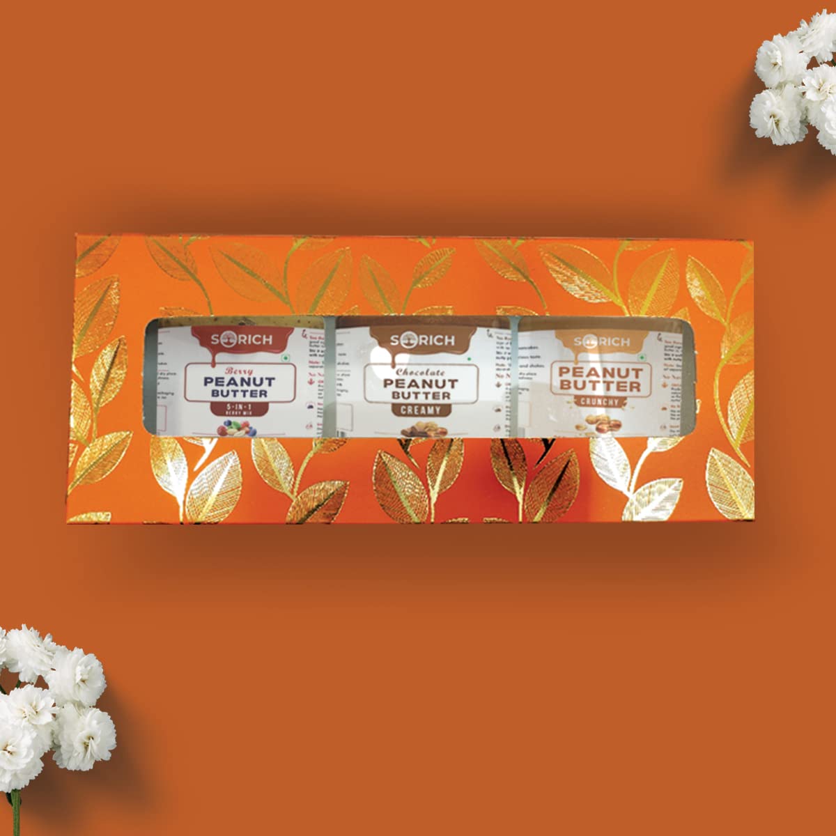 Perfect diwali gift for your friends family colleagues clients or any loved ones. Celebrate the Diwali festival of lights and joy by gifting healthy immunity-boosting delicious dry fruits - Crunchy Peanut Butter Berry Peanut Butter & Chocolate Peanut butter. At SORICH we strive for a journey that starts on the farms and ends on your table to provide a Product made of organic natural and sustainable ingredients so that your personal health is well nurtured. Relish the taste of exotic chocolate in our Peanut Butter. Stone grinding is a method of production using incredibly smooth Stone wheels with minimal friction enables the nuts’ temperature to be maintained at low levels throughout the grinding process. Our peanut butter does not contain any preservatives added sugar salt or palm oil. This natural butter is made of 100% dry roasted peanuts sourced straight from farms. It is roasted to perfection for a nutty flavor.