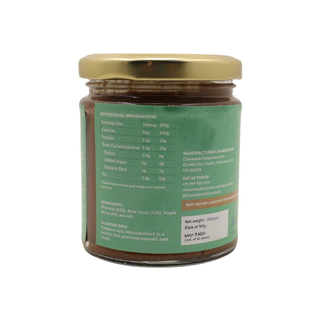 The Cinnamon Kitchen Almond Butter Chocolate Spread - 200g | Shark Tank Featured | Vegan Organic Gluten-Free | Ideal for PCOS Diet