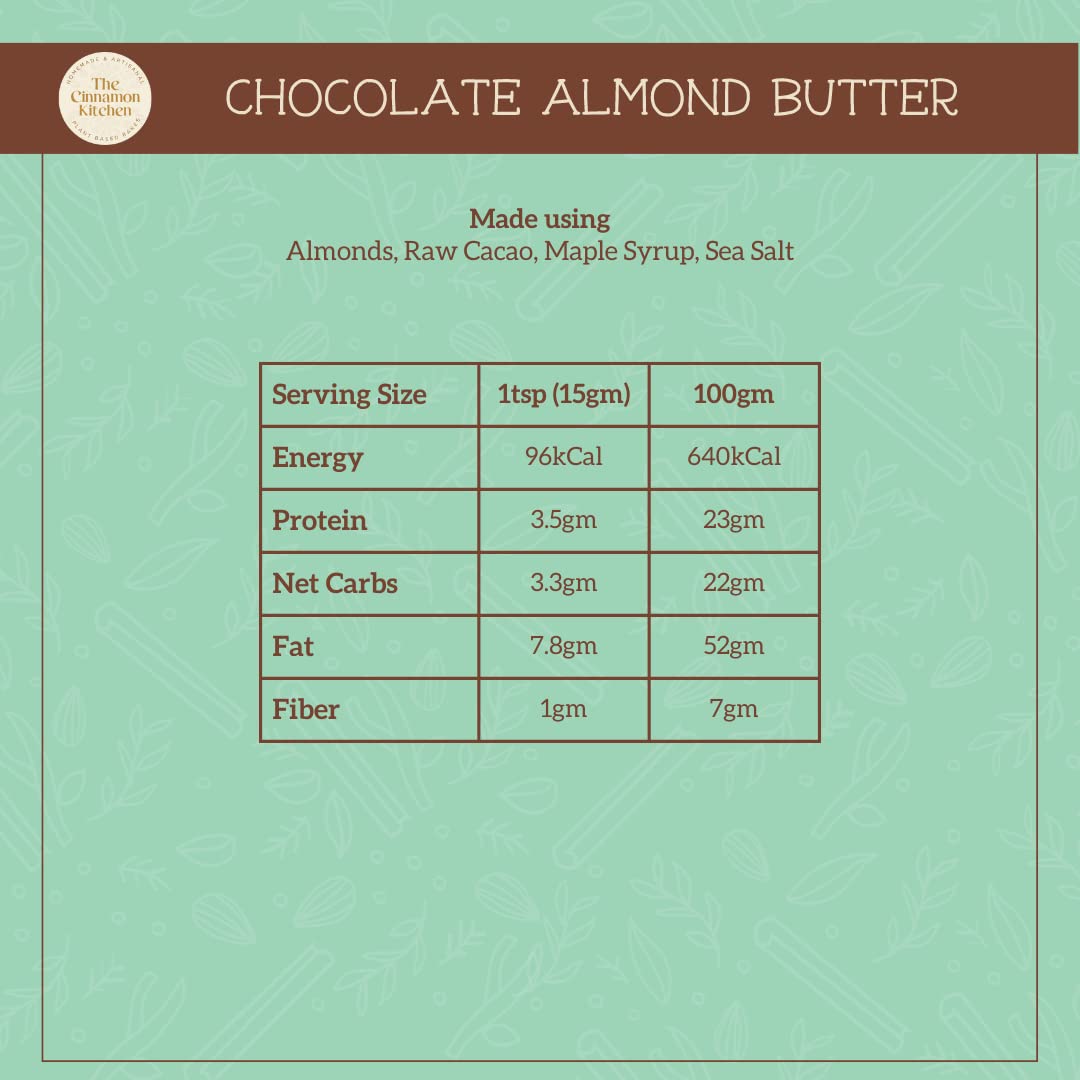 Versatile Use Perfect as a spread a snack or a baking ingredient The Cinnamon Kitchen's Almond Butter Chocolate is a versatile addition to your pantry enhancing your meals and treats with its rich chocolatey goodness. Pairs well with toasts fruits and smo