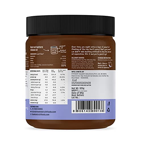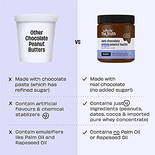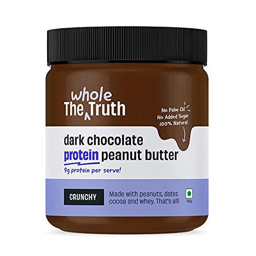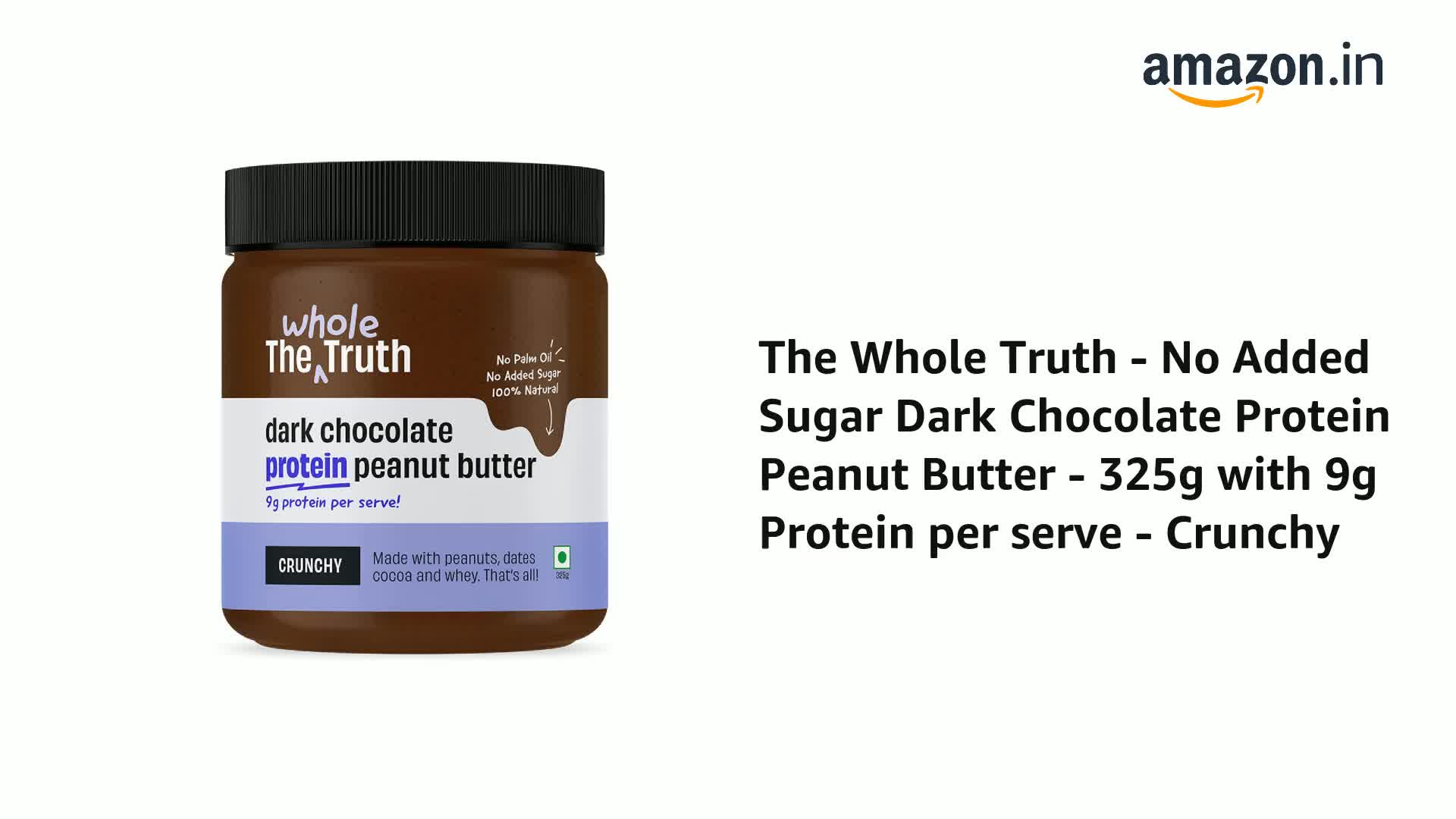 The Whole Truth - No Added Sugar Dark Chocolate Protein Peanut Butter - 325g with 9g Protein per serve - Crunchy