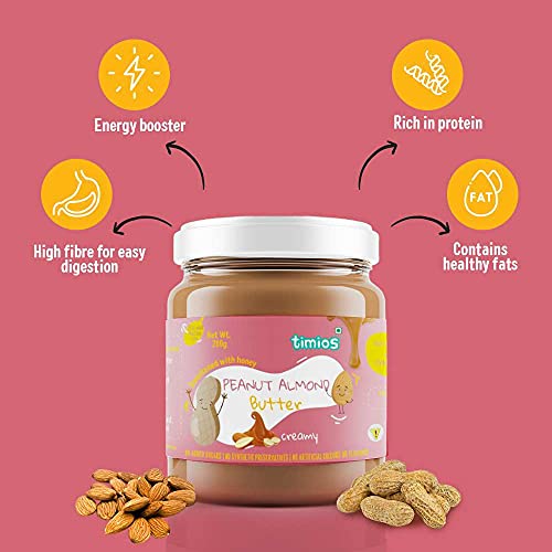 Timios Almond Peanut Butter|Sweetended Honey|Cholestrol & Gluten Free|For Kids and Adults|200g