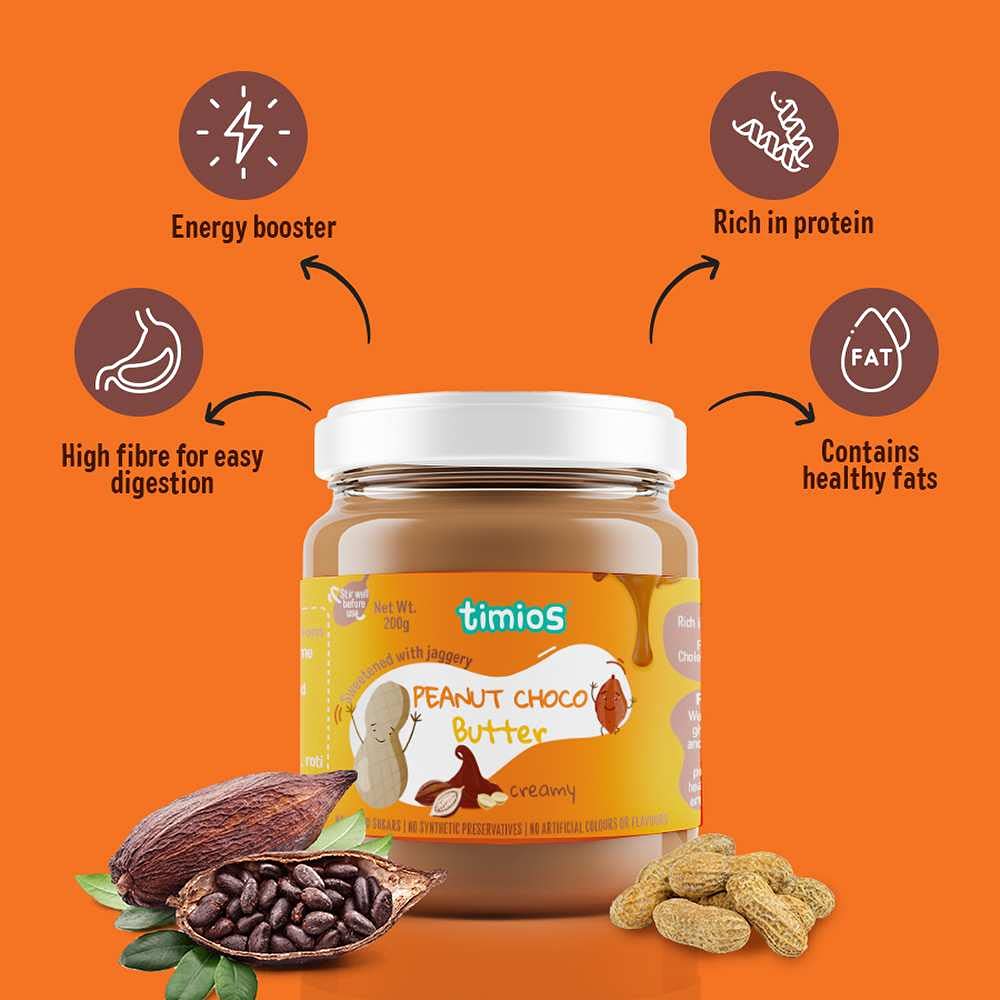 Timios Healthy ChocoPeanut Butter|Sweetened with Jaggery|Cholestrol & Gluten Free|For Kids and Adults|200g