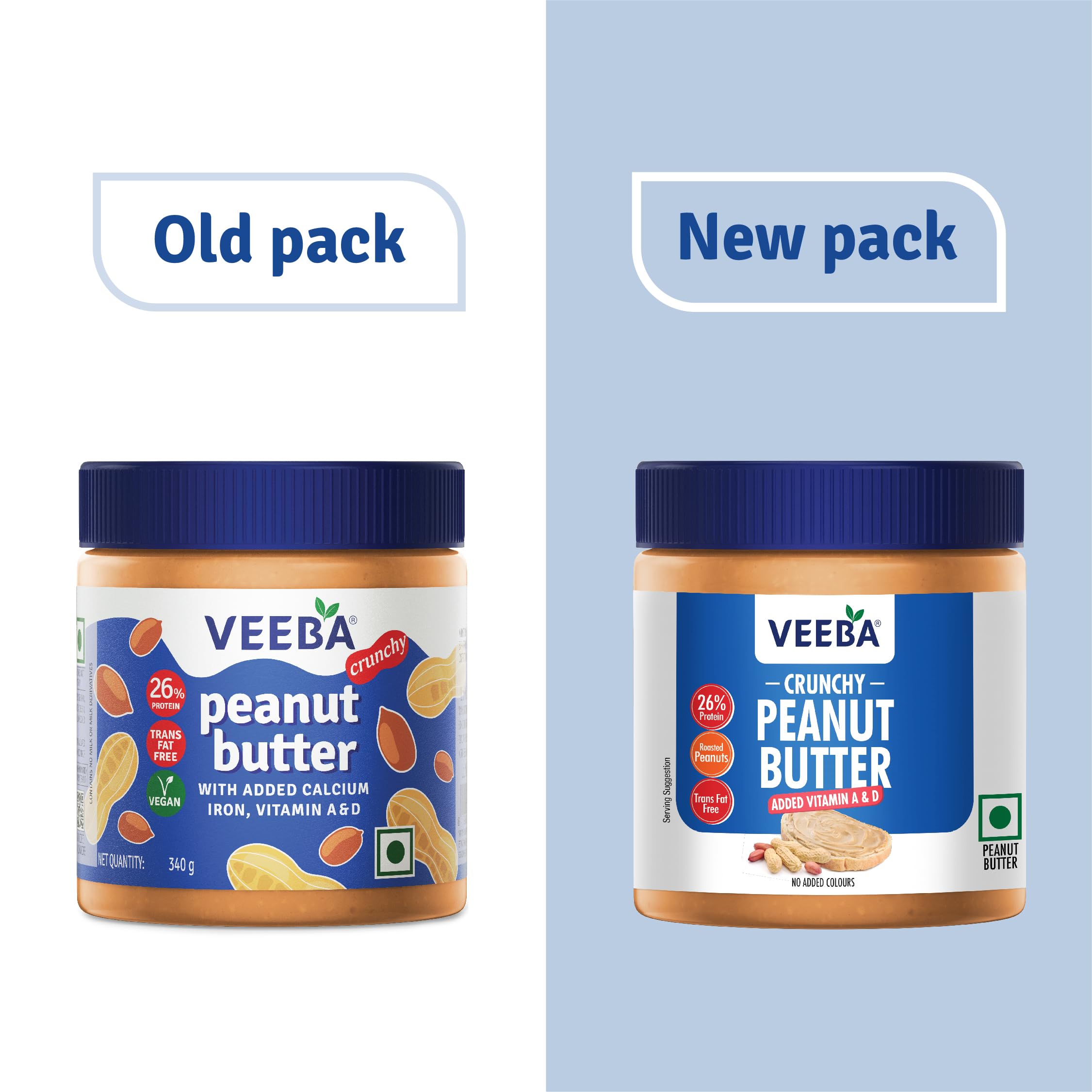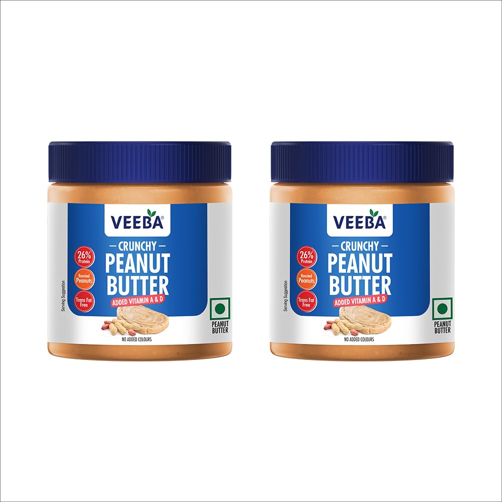 HomeGroceryFlavorsNut & Seed ButterVeeba Peanut Butter Crunchy | High Protein | Naturally Gluten Free | Vegan | Trans Fat Free | No Added Preservatives | Added Calcium Iron Vitamin A & D | No Added Colour & Flavour | Non GMO | 340 g | Pack of 2 | Combo
