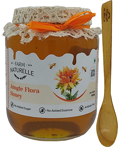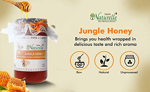 Farm Naturelle-Jungle Flower Wild Forest (Jungle) Honey | 100% Pure Honey | Raw Natural Unprocessed Honey - Un-heated Honey | Lab Tested Honey In Glass Bottle-850g+150g Extra and a Wooden Spoon.