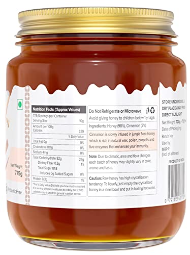 Virgin Cinnamon Infused 100% Pure Raw Natural Wild Forest Honey-700 GMS(Glass Bottle)-Delicious and Healthy