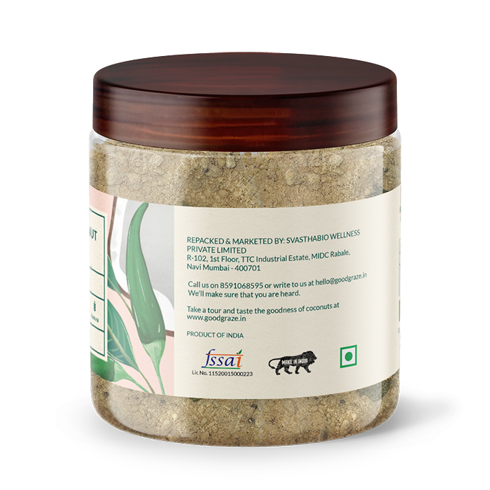 Good Graze Green Coconut Chutney is a mix that is an on-the-go premix that can be used anytime anywhere. All it needs is just water and the chutney is ready to serve. Good Grazes coconuts are grown in natural spring water. The source of our coconuts nutrition comes fully and directly from the natural spring water immersed in the land. This rare system provides the earth with that benefit the fruit bearing coconut trees. This natural spring water is of high quality & has extensive mineral content. One can only imagine the positive inence this water would create on its surrounding flora and fauna.