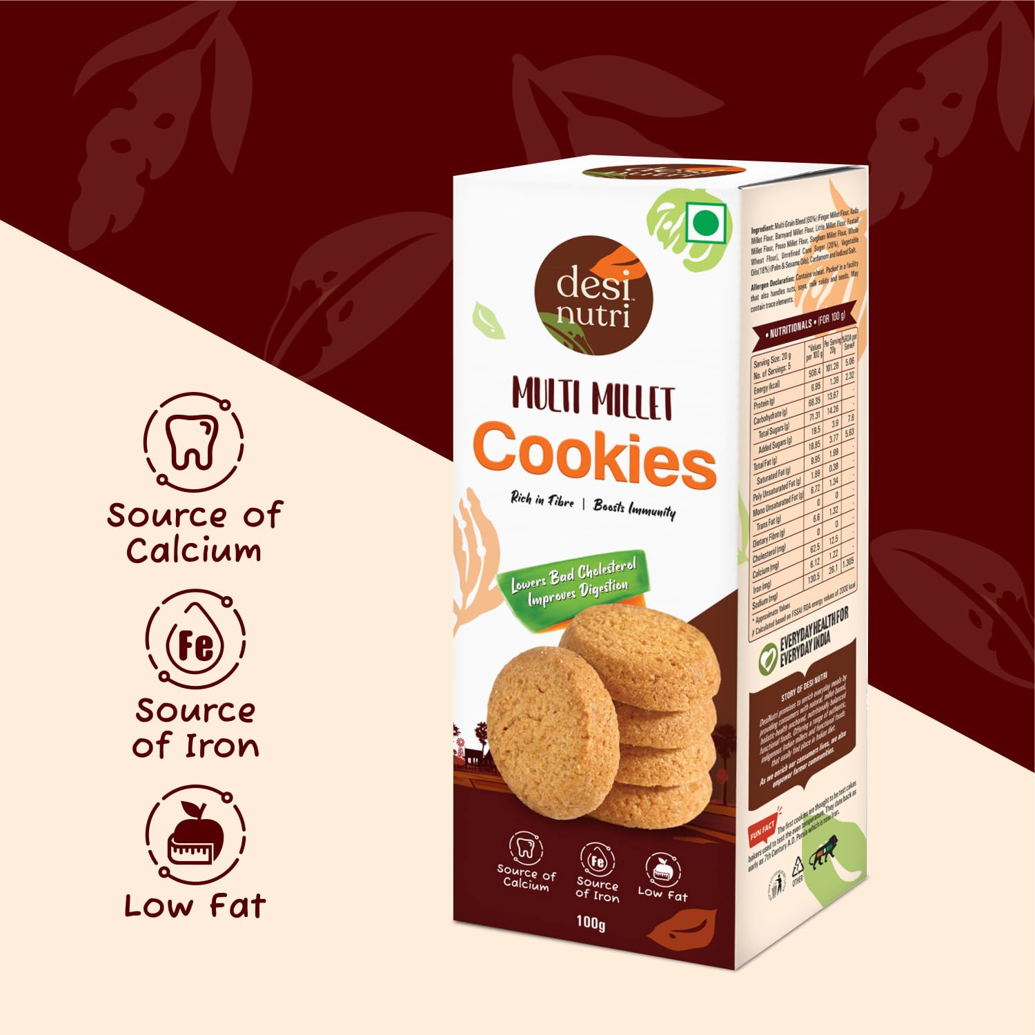 Desi Nutri Multi Millet Cookies | Ready To Eat Cookies | Millet Cookies | Cookies - 100 Gms | Rich In Fiber & Immunity Vanilla