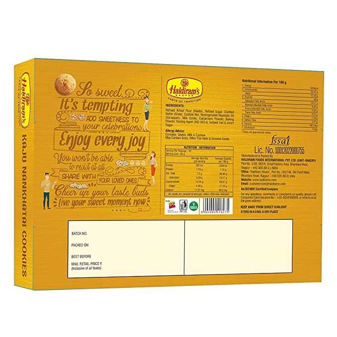 A crunchy twist on the classic nankhatai biscuits - made with desi ghee and the finest of cashew nuts. These plump discs of buttery atta cookies bursting with the nutty flavor of kaju are an indulgent treat to your senses.