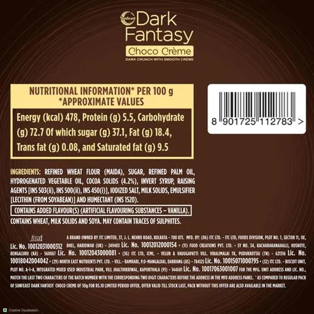 Lose yourself in the luxurious taste of Dark crunchy shell and smooth Choco Creme. Dark Fantasy Choco Creme is a double chocolate delight made with rich dark choco crème between intricate thin biscuits with a classic chocolate flavor. To chocolate lovers each bite is a taste of heaven.