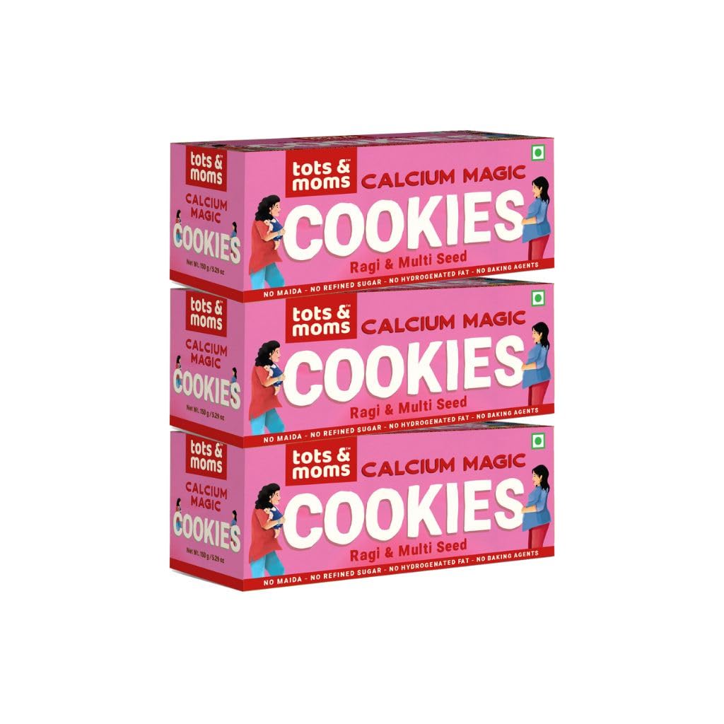 Tots & Moms Foods | Healthy Wholesome & Nutritious Ragi & Multiseed Cookies - Calcium Magic for Adults |Junk-free | No White Sugar Snack | Pack of 3-150g Each
