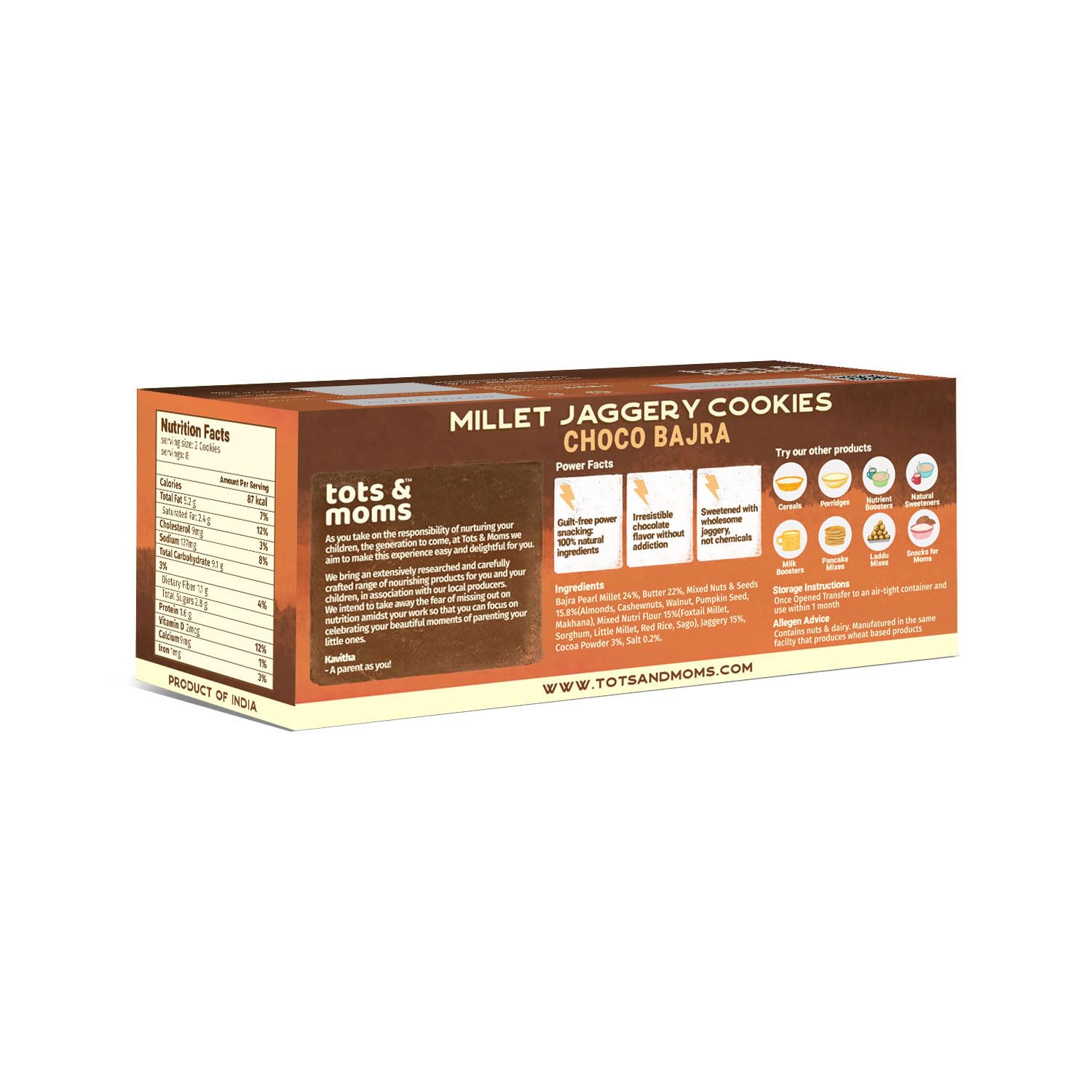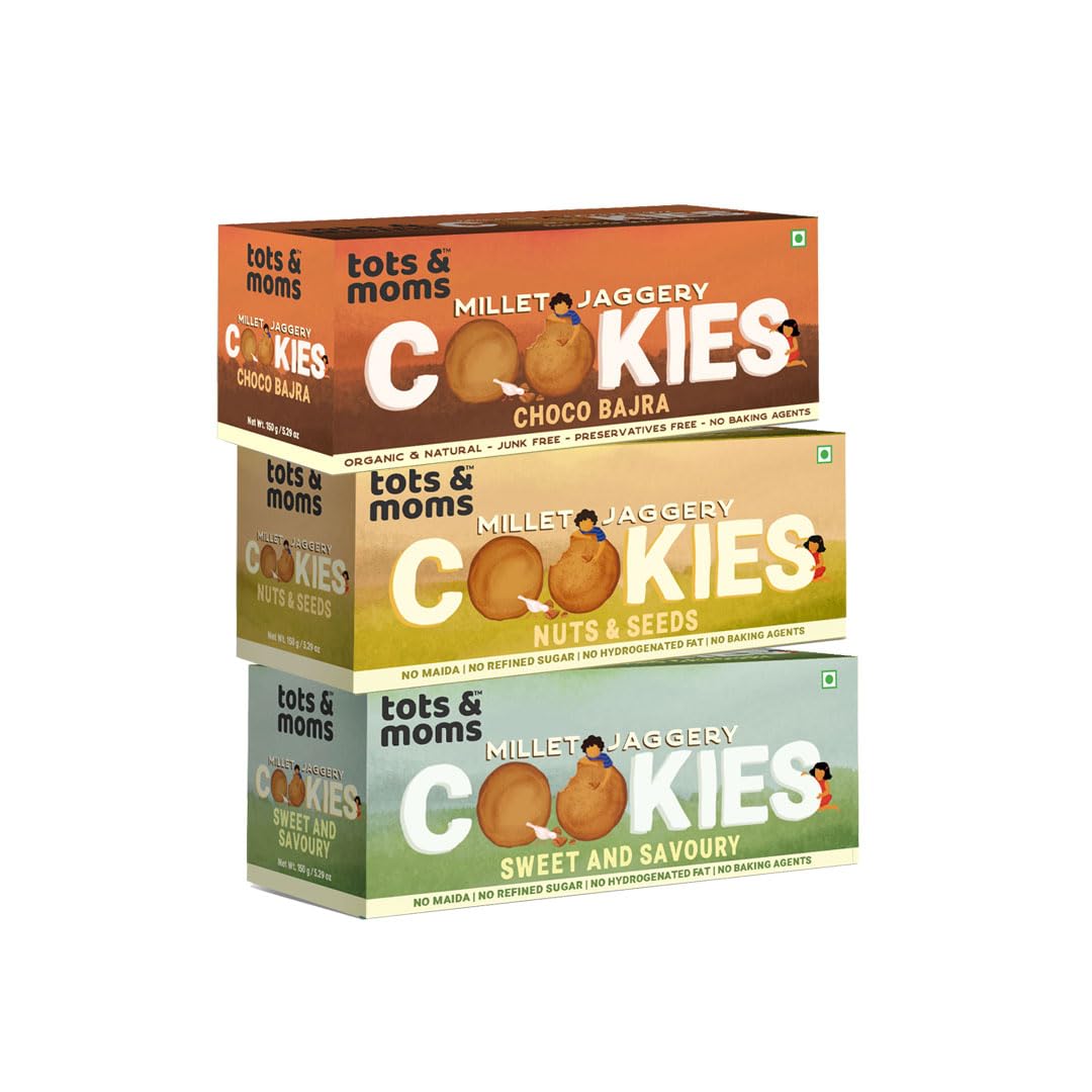 HomeGrocerySnacksCookiesTots & Moms NO Maida NO Sugar - Nuts & Seeds Cookies |Sweet & Savory Cookies | Choco Bajra Cookies | Millet & Jaggery Biscuits | Pack of 3-150g Each