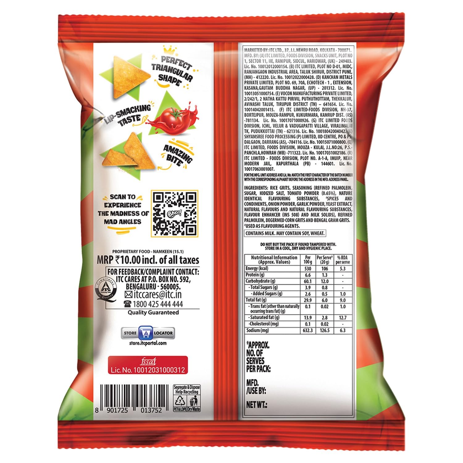 Bingo Mad Angles Tomato Madness 36.5 Gram Pack Tangy & Crunchy Chips Perfect For Snacking - Tomato