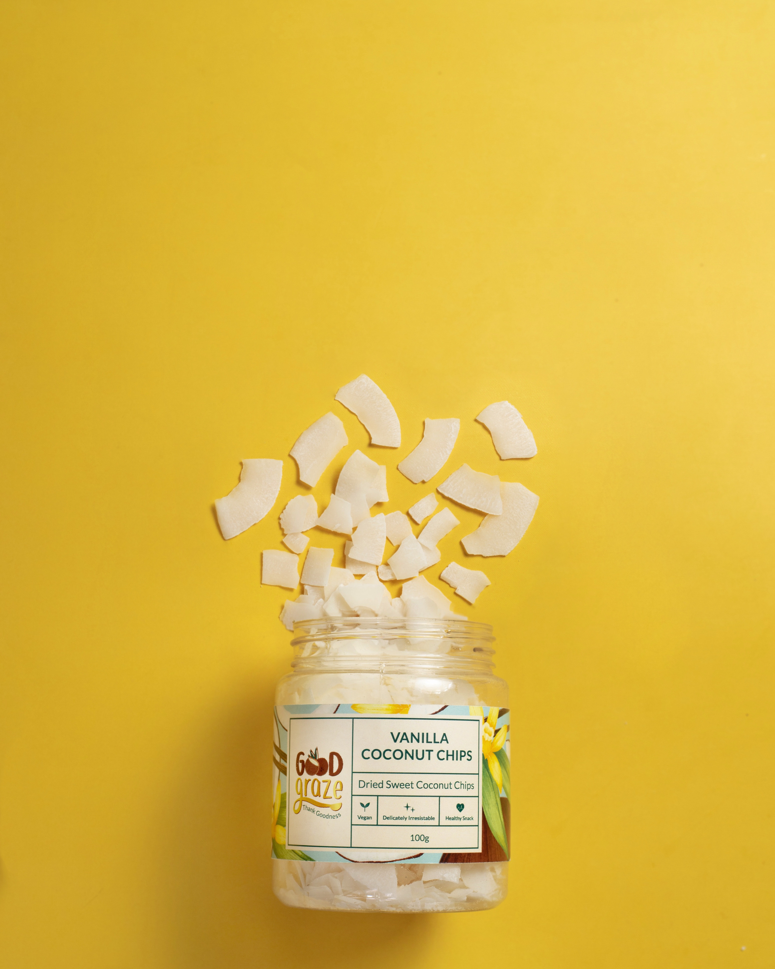 Good Graze Vanilla Coconut chips are made with freshly harvested coconut white meat with an aromatic vanilla flavor that will your snacking experience. It is dried (not fried!) to create a crisp and delectable snack. Snacking healthily has never been so simple! You can eat coconut chips whenever and wherever you want Good Grazes coconuts are grown in natural spring water. The source of our coconuts nutrition comes fully and directly from the natural spring water immersed in the land. This rare system provides the earth with that benefit the fruit bearing coconut trees. This natural spring water is of high quality & has extensive mineral content. One can only imagine the positive inence this water would create on its surrounding flora and fauna.