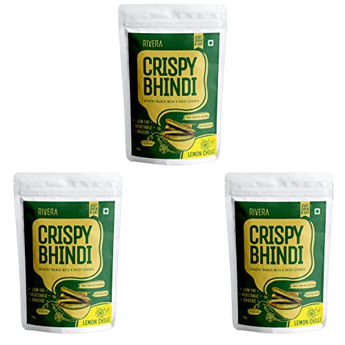 Rivera Crispy Bhindi (Lemon Chili) Okra Chips Vegetable Snacks Vacuum Cooked So No Need To Cook Ready To Eat 50G Each (Pack of 3)