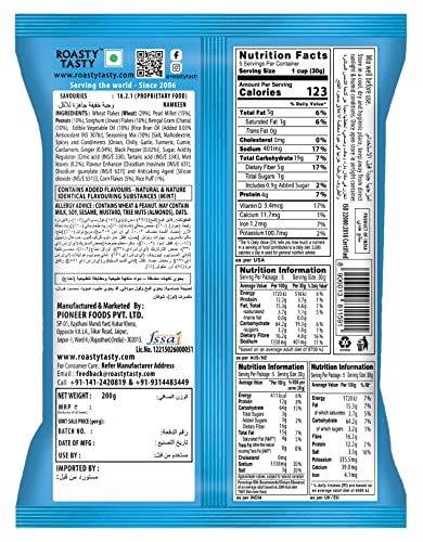 HomeGrocerySnacksHealthy SnacksRoasty Tasty 5 Grain Mix Roasted Snack of Whole Grain & Millets with Pudina Punch Roasted Namkeen Snacks 200g | Healthy Snacks for All | No Trans Fat | Export Quality | Great Diet Snack for weight loss