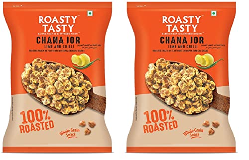 Roasty Tasty Roasted Chana Jor Lime & Chilli Whole Grain Indian Snacks- 400g (pack of 2 200g each) |No MSG | Zero & Trans Fat | Diet Namkeen | Gluten Free | Ready-to-eat | High in protein | Export Quality