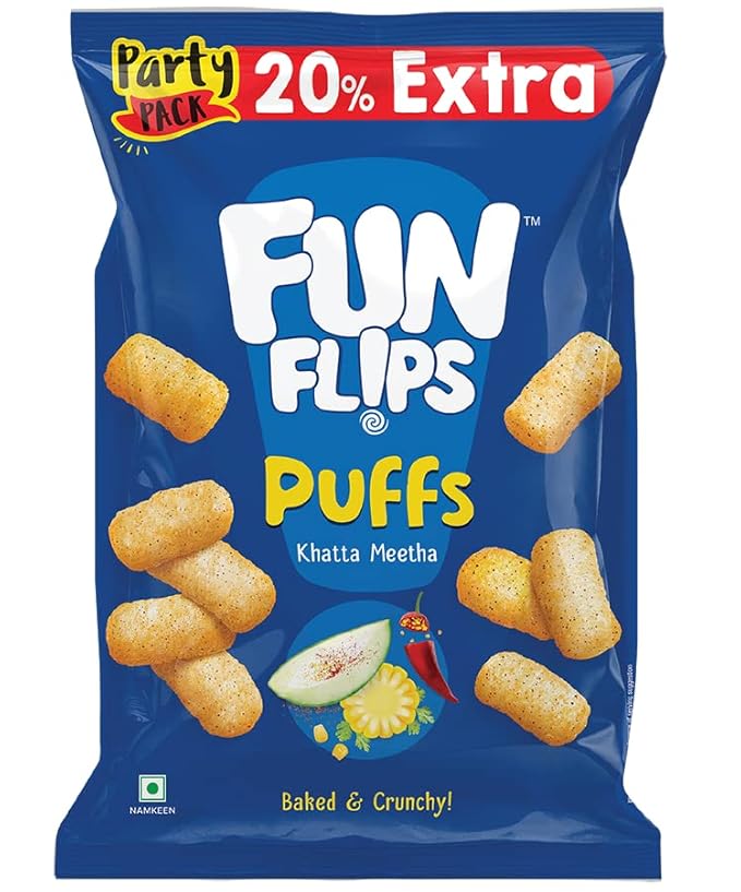 Baked & Crunchy! Fun Flips "KHATTA MEETHA" puffs.