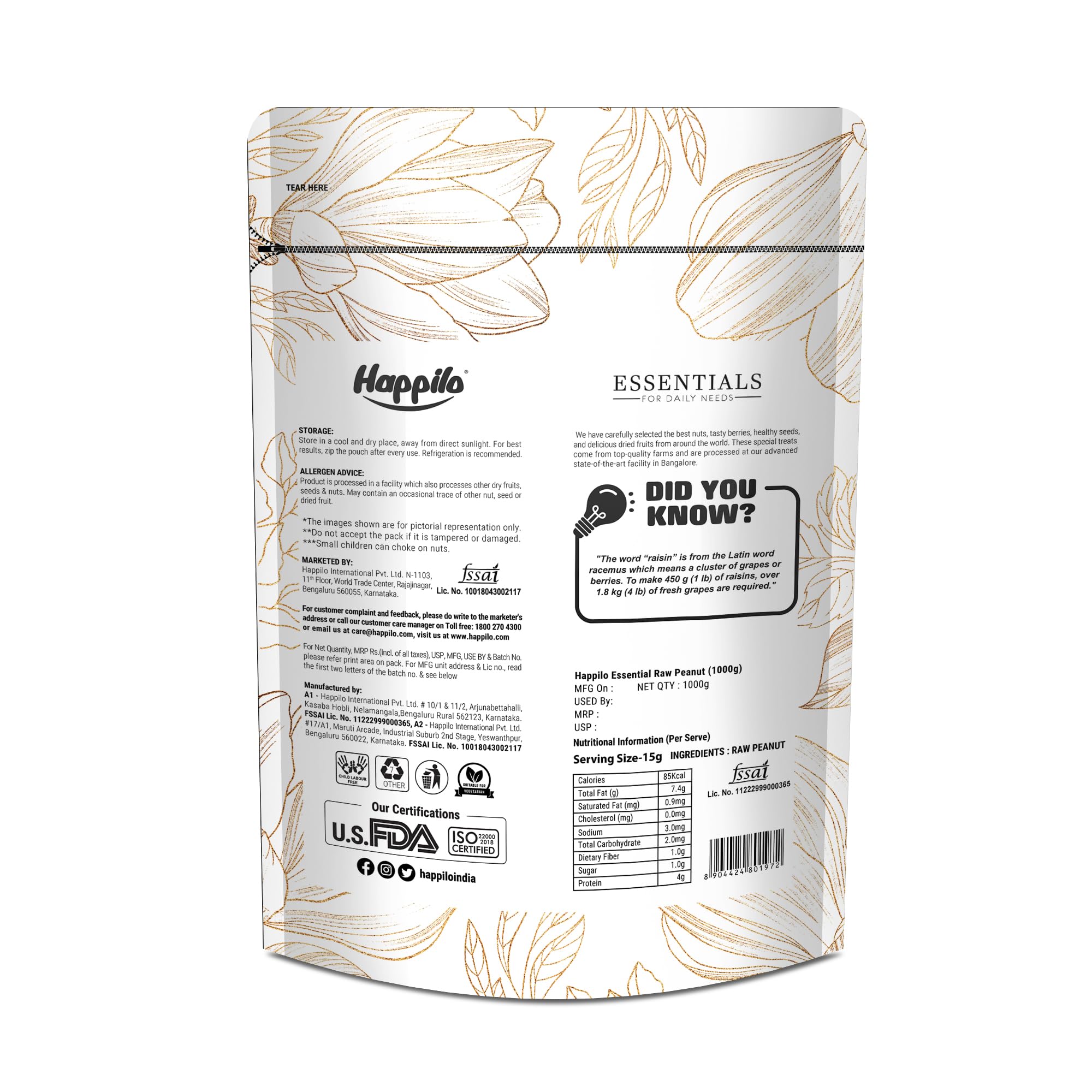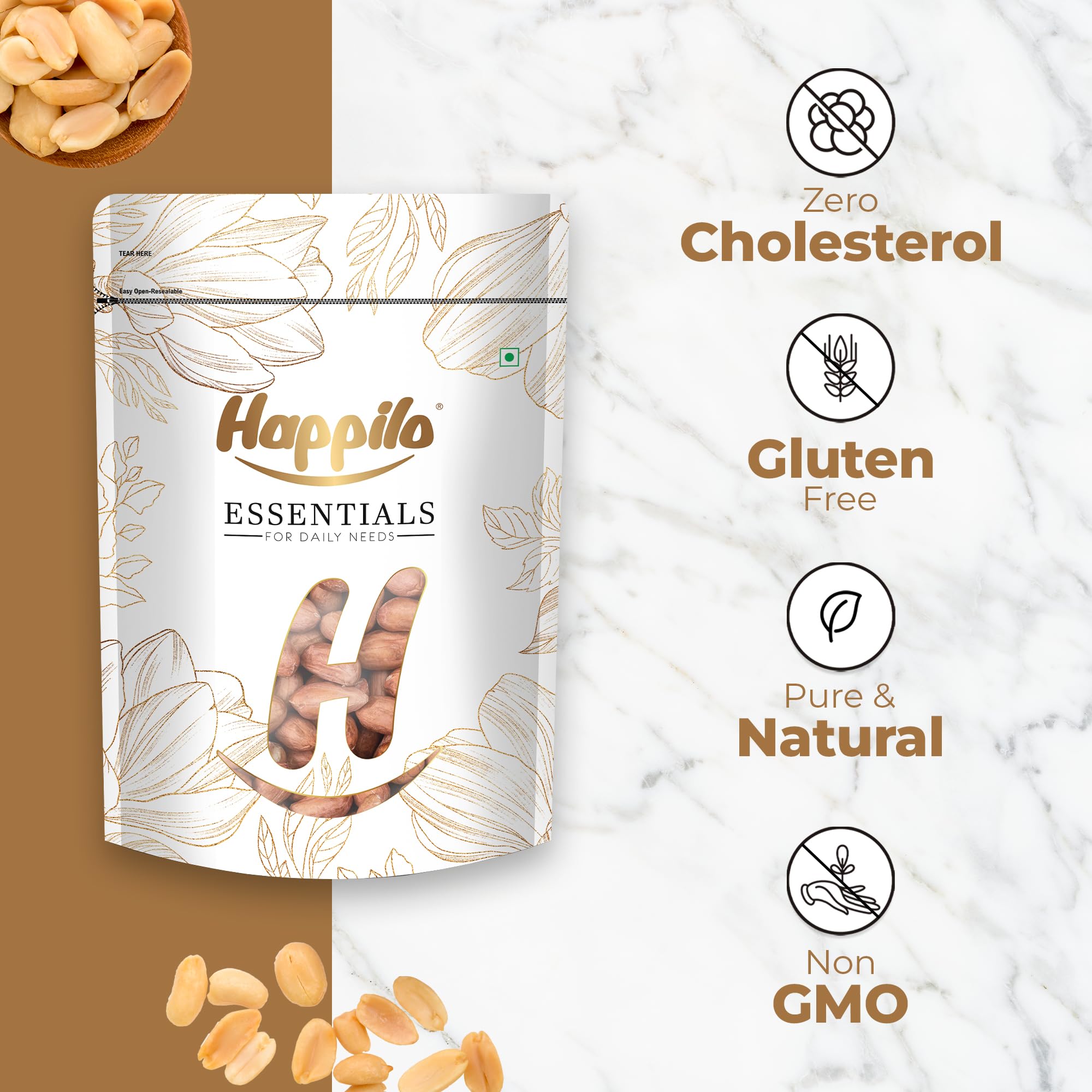 Happilo Essentials Raw Peanuts offer a pure and unprocessed snacking experience. With no additives or preservatives these peanuts maintain their authentic flavor providing a versatile and satisfying crunch for any snacking occasion. As a protein powerhouse raw peanuts support muscle health and offer a delicious source of plant-based protein. Rich in healthy fats they contribute to heart health and satiety making them a guilt-free indulgence. Beyond taste these peanuts are a natural source of essential nutrients adding a wholesome boost to your daily diet. Choose Happilo Essentials for a snack that prioritizes purity and nutritional value in every bite.