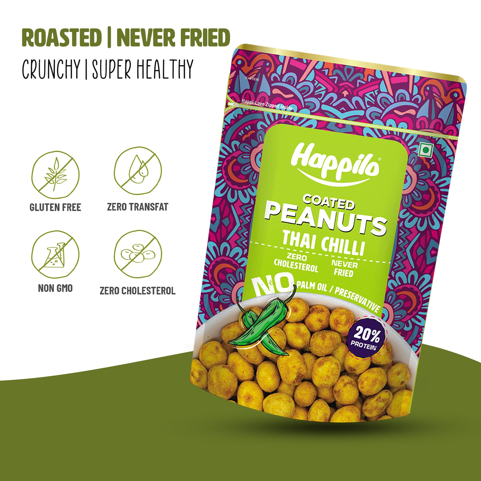 Happilo Roasted Coated Peanuts contains health benefiting nutrients minerals antioxidants vitamins and fatty acid that are essential for optimum health. It can be taken at any time or anyplace like in the morning at lunch at picnic at party etc. Add a sprinkle to your soups and salad dishes for a crunch just before serving.