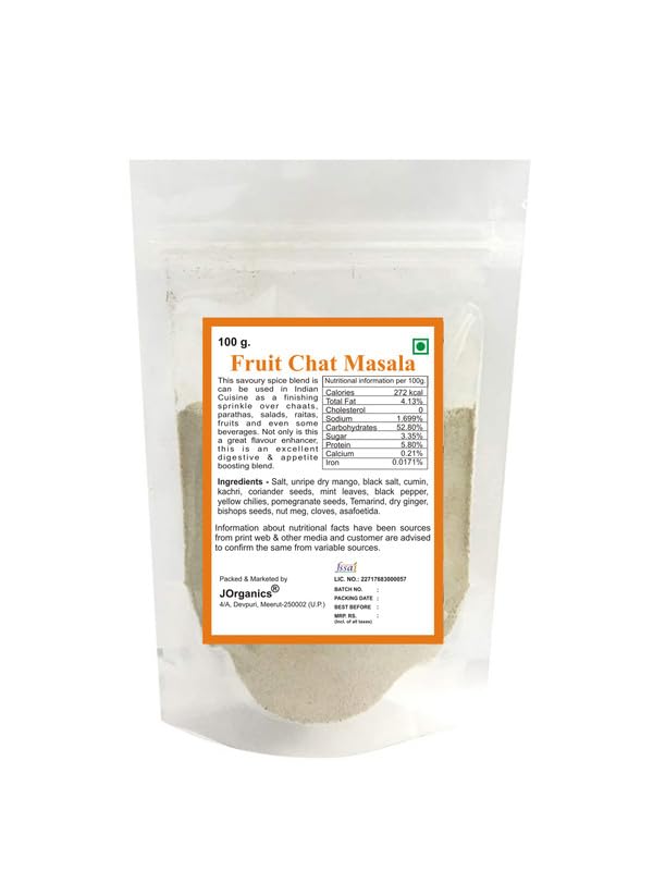 JOrganics Chatpata Chat Masala Powder Blended Spices For Fruitchat Salads Dahi Chach Delicious Dishes Natural Ingredients 100g