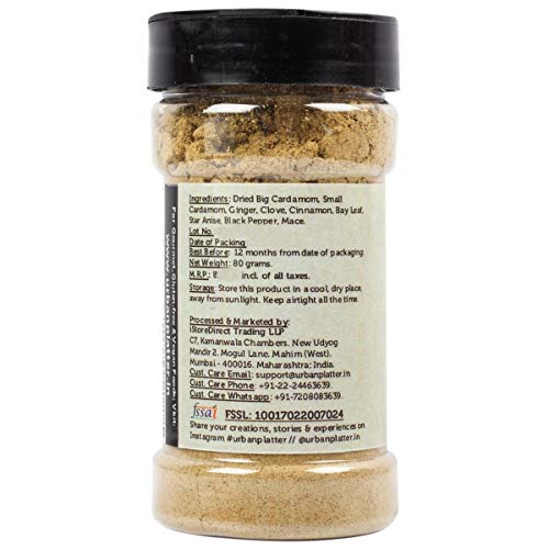 • Ingredients: Grounded dried big cardamom small cardamom ginger clove cinnamon bay leaf star anise black pepper and mace.