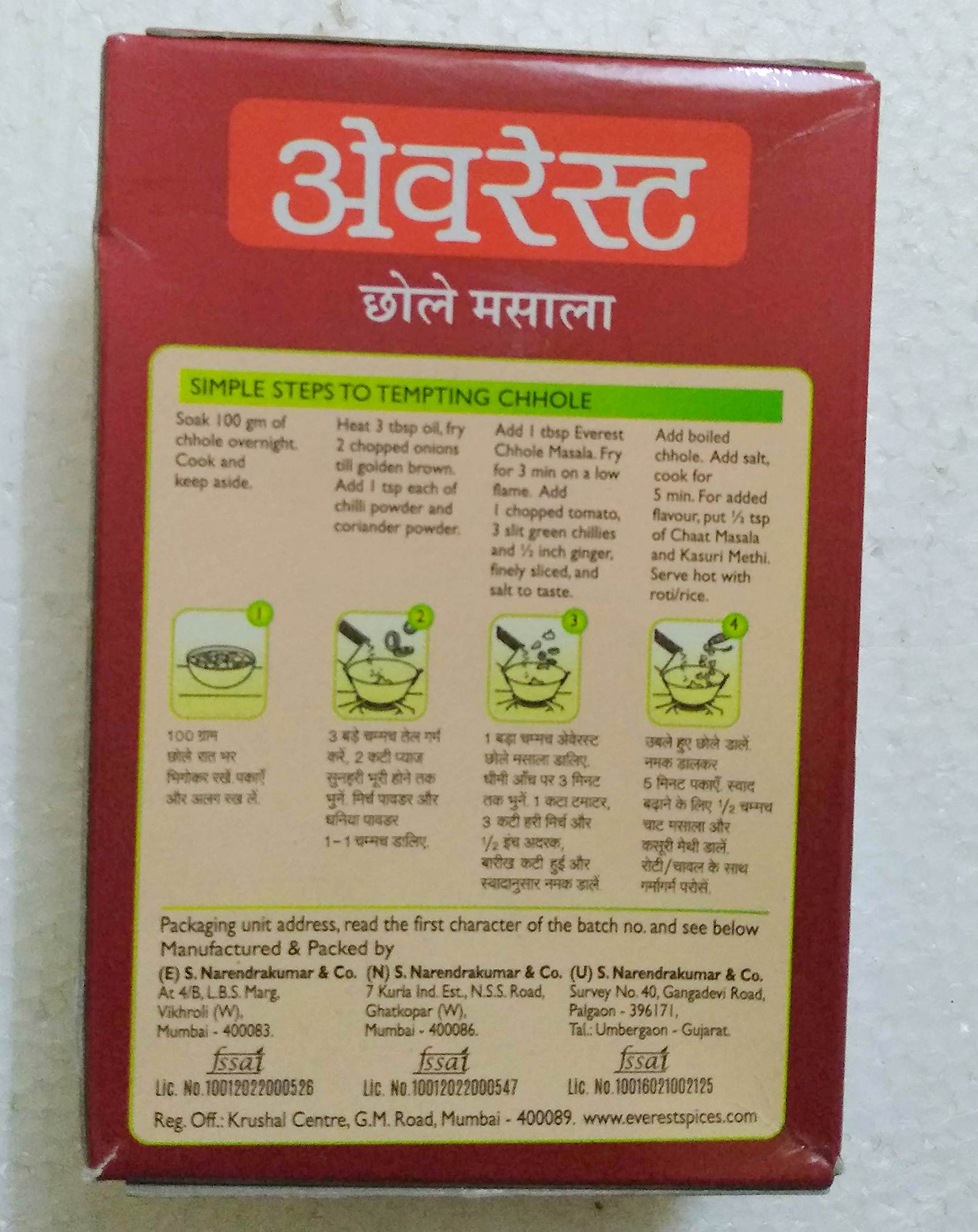 Everest Masala Chhole 50 Gram Carton - AniseBayFennelGarlicGingerMustardSesameTurmeric Powder