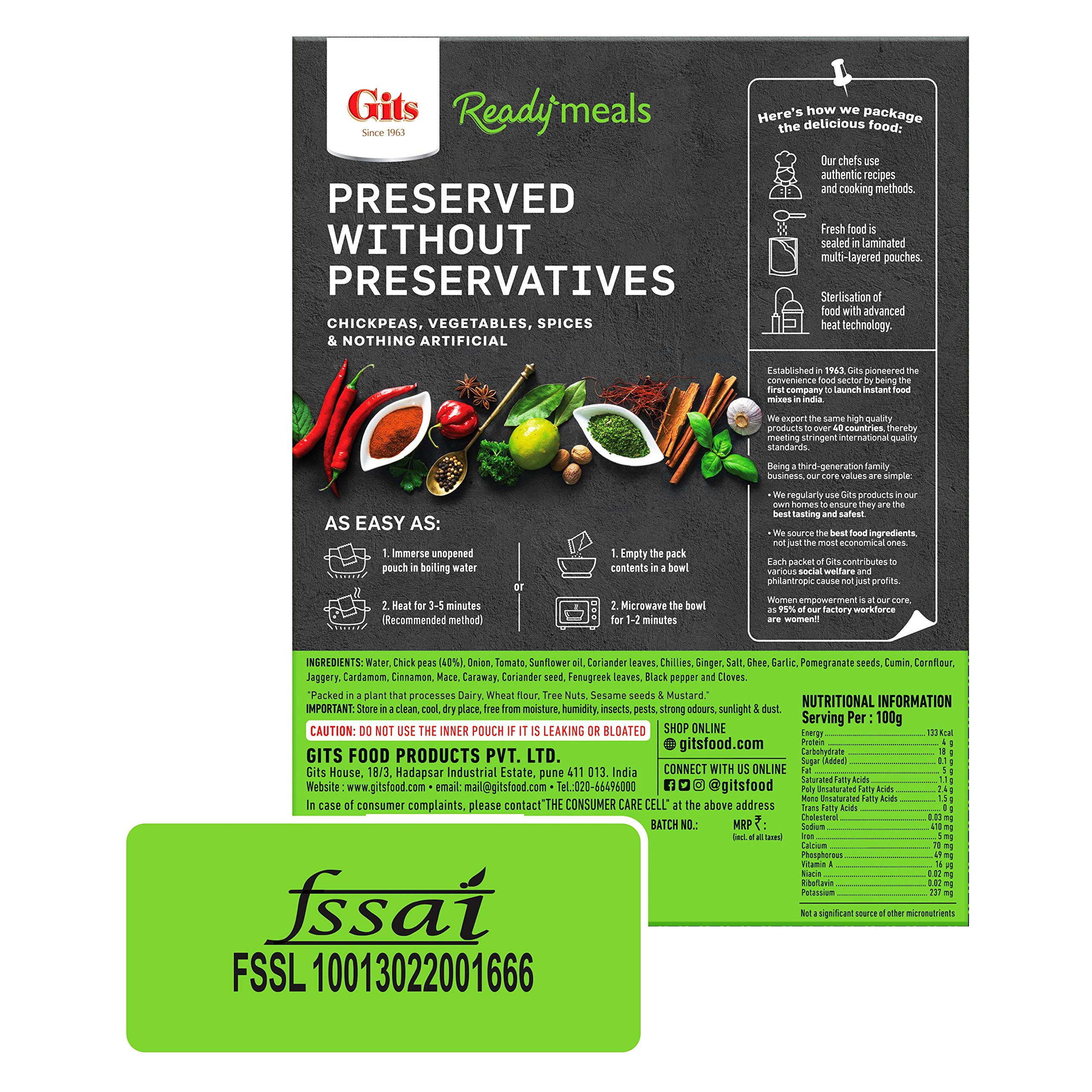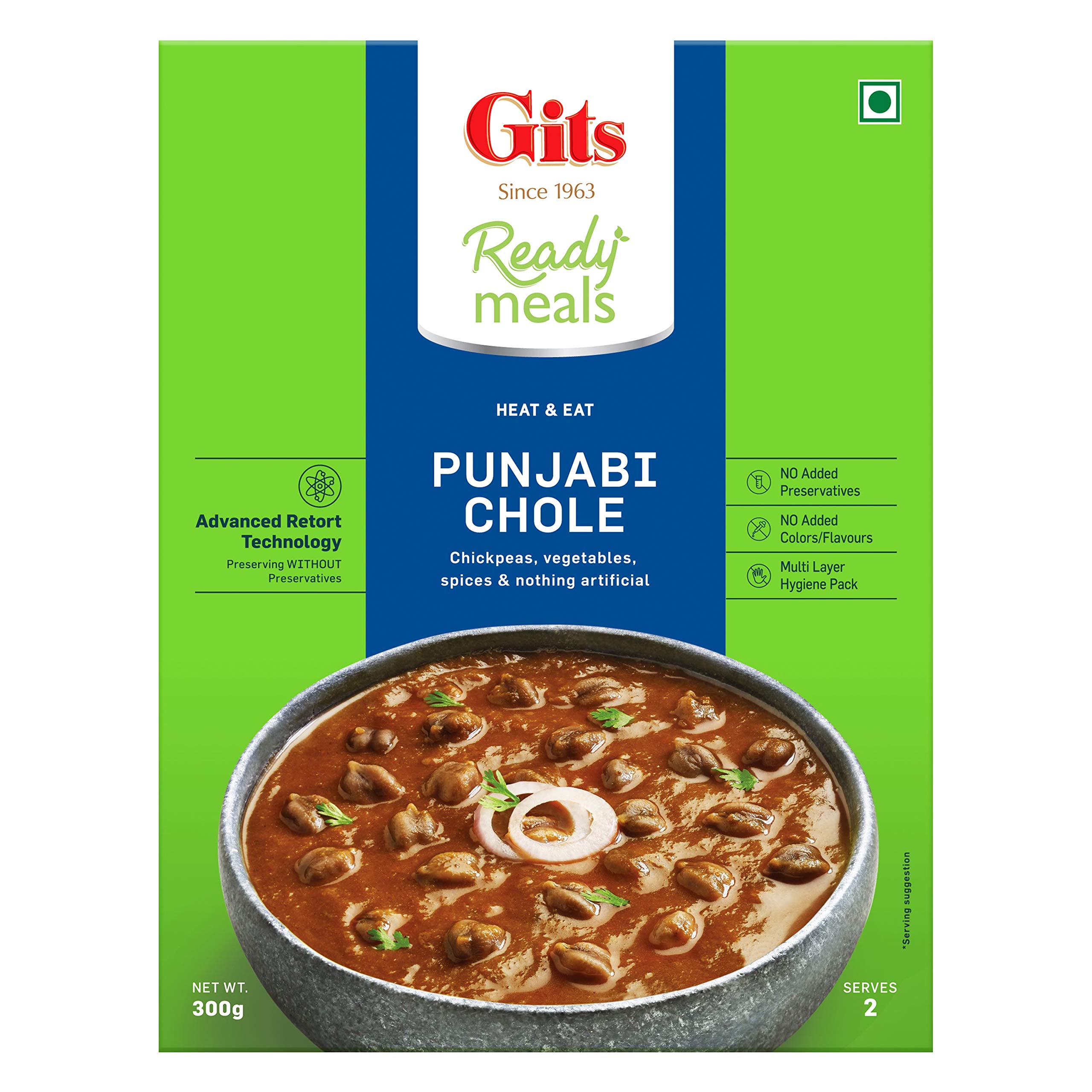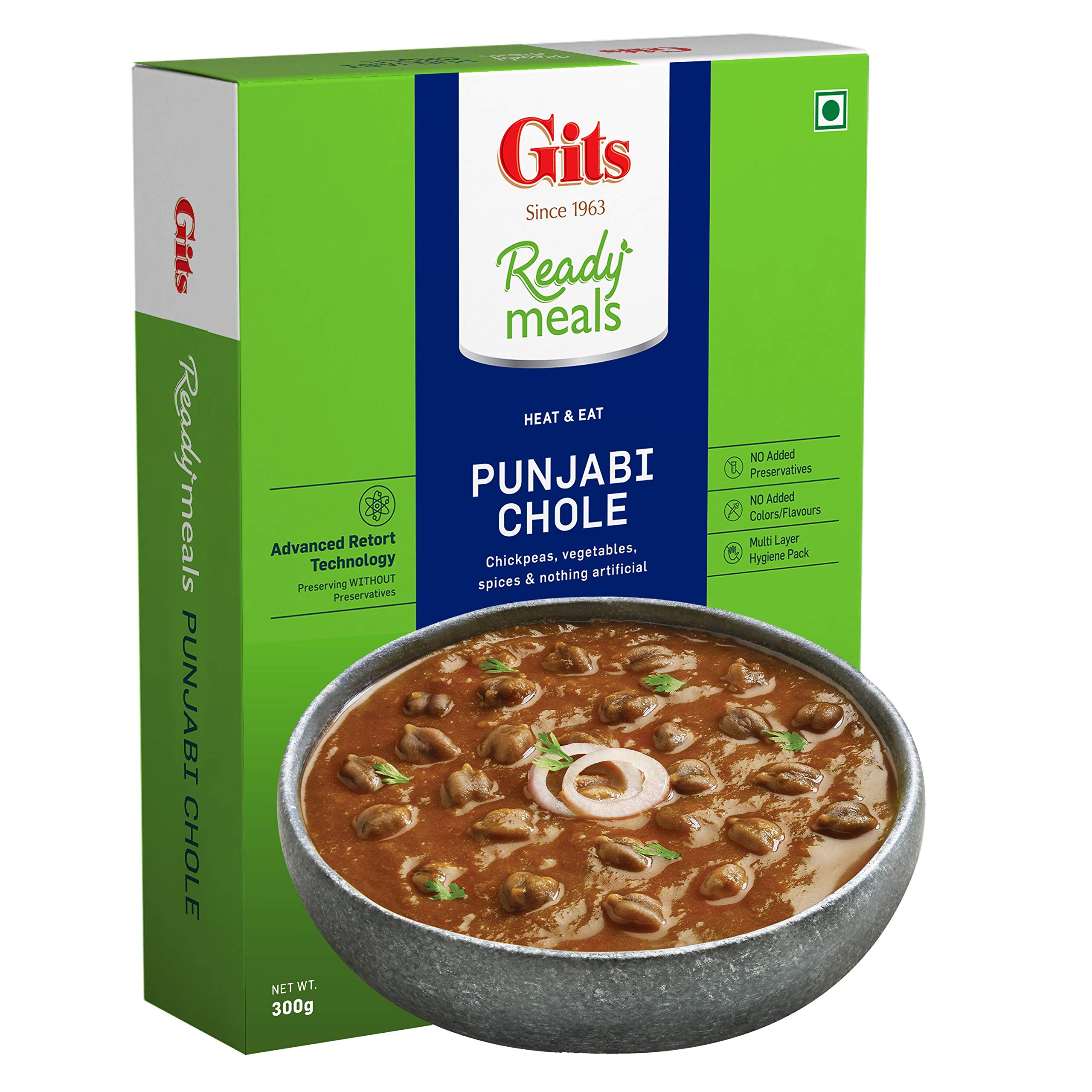 Gits Ready to Eat Punjabi Chhole Pure Veg Heat and Eat Microwaveable 1200g (Pack of 4 X 300g Each)
