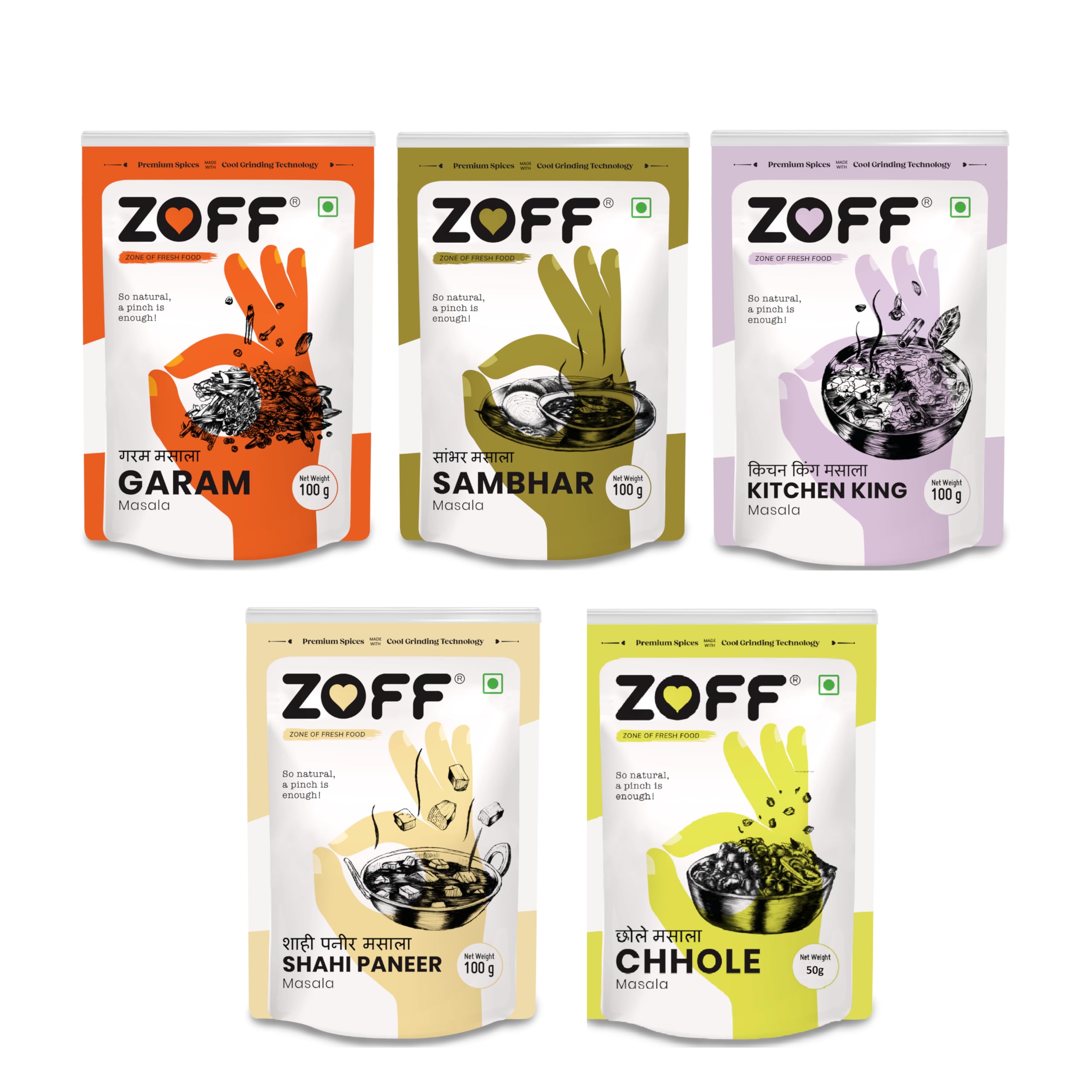 Zoff Curry Spices Combo - Veg | Garam Masala- 100 g | Sambhar Masala -100 g | Kitchen King -100 g |Shahi Paneer Masala -100 g |Chhole Masala - 50 g| Pack of 5 | - Total weight 450g