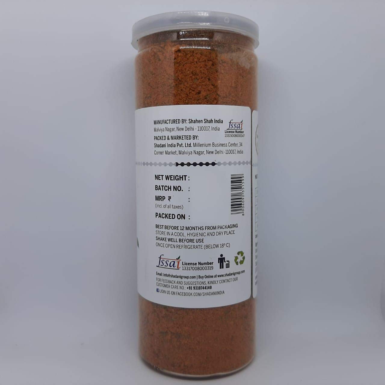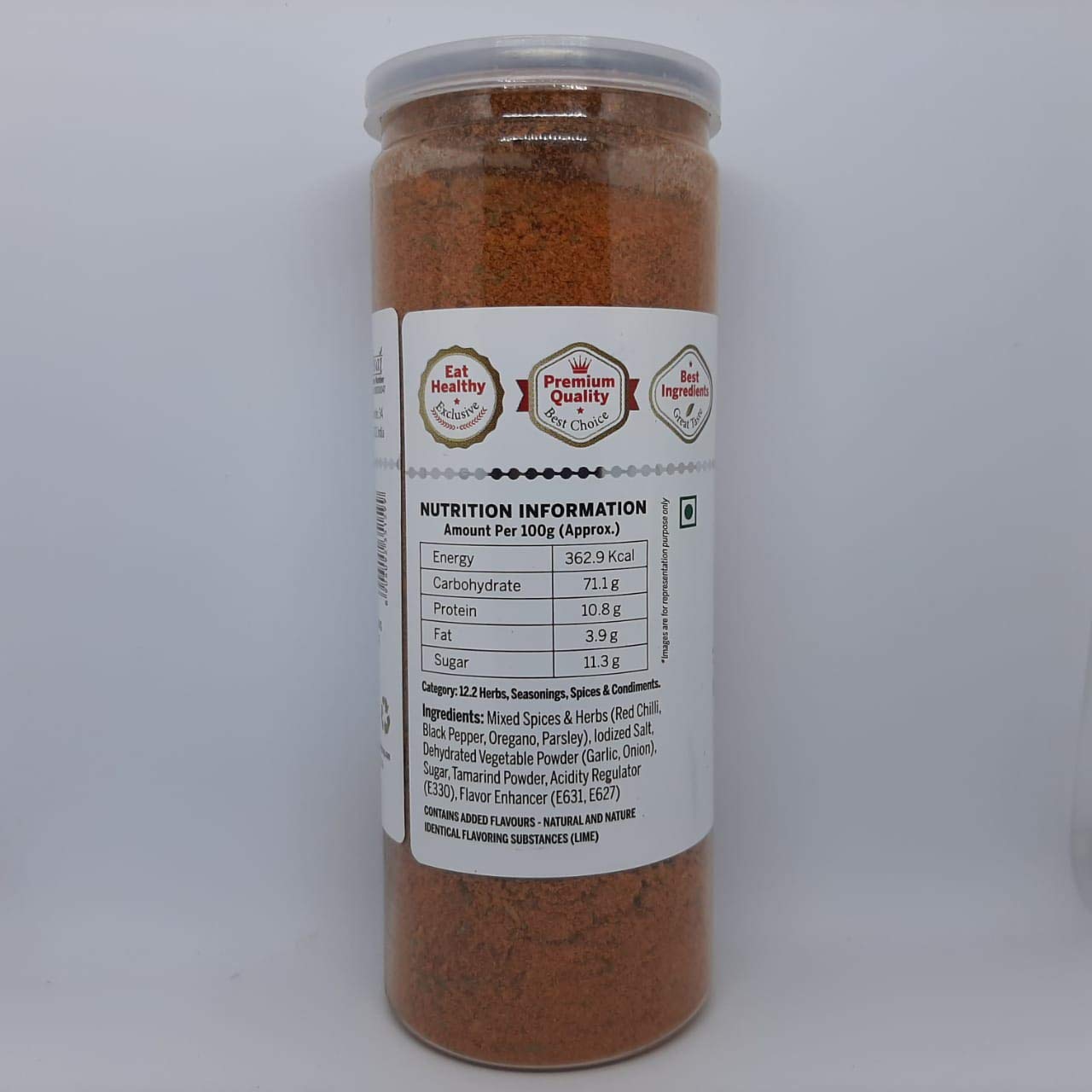 Ingredients: Mixed Spices & Herbs (Red Chilli, Black Pepper, Oregano, Parsley), Iodized Salt, Dehydrated Vegetable Powder (Garlic, Onion), Sugar, Tamarind Powder, Acidity Regulator (E330), Flavor Enhancer (E631, E627)