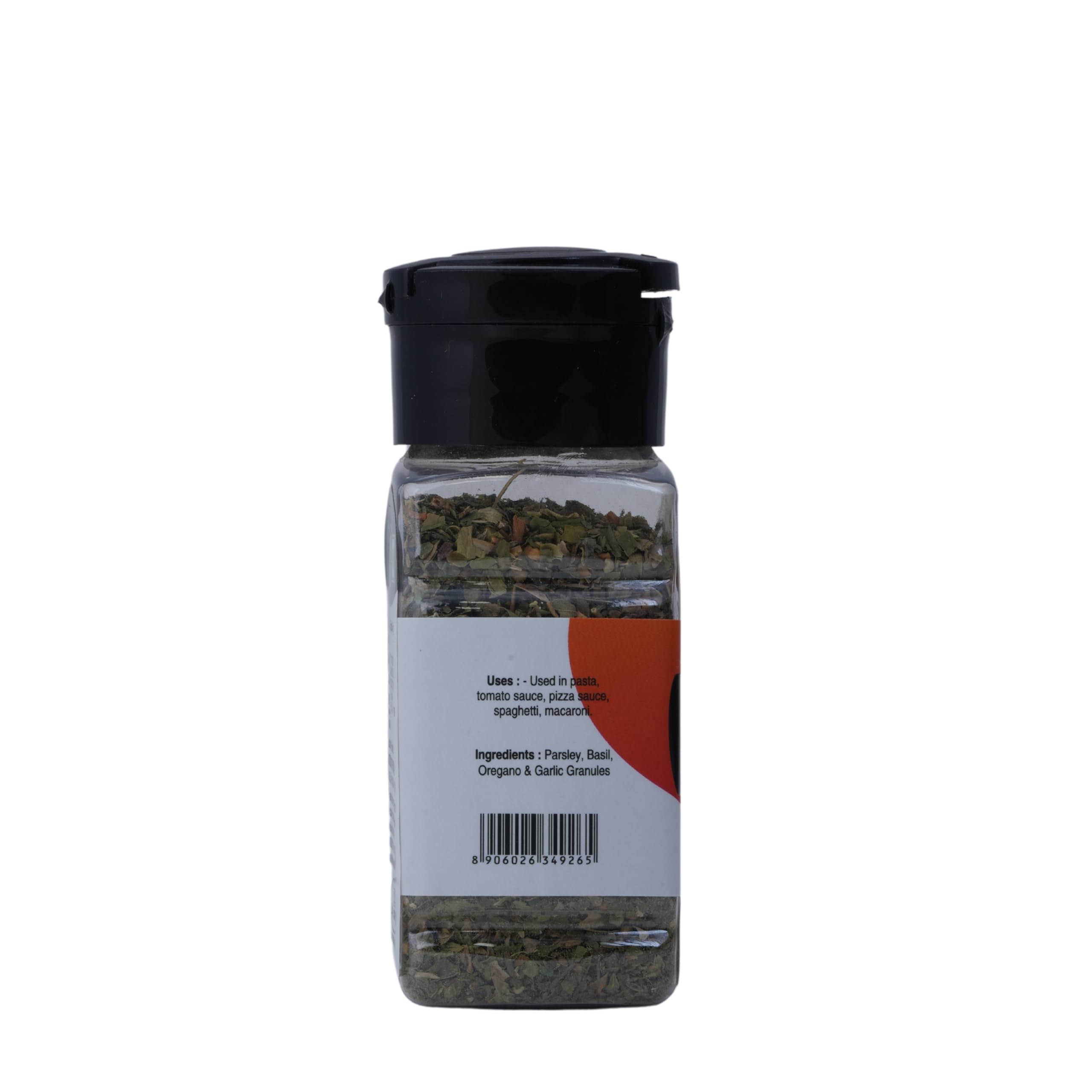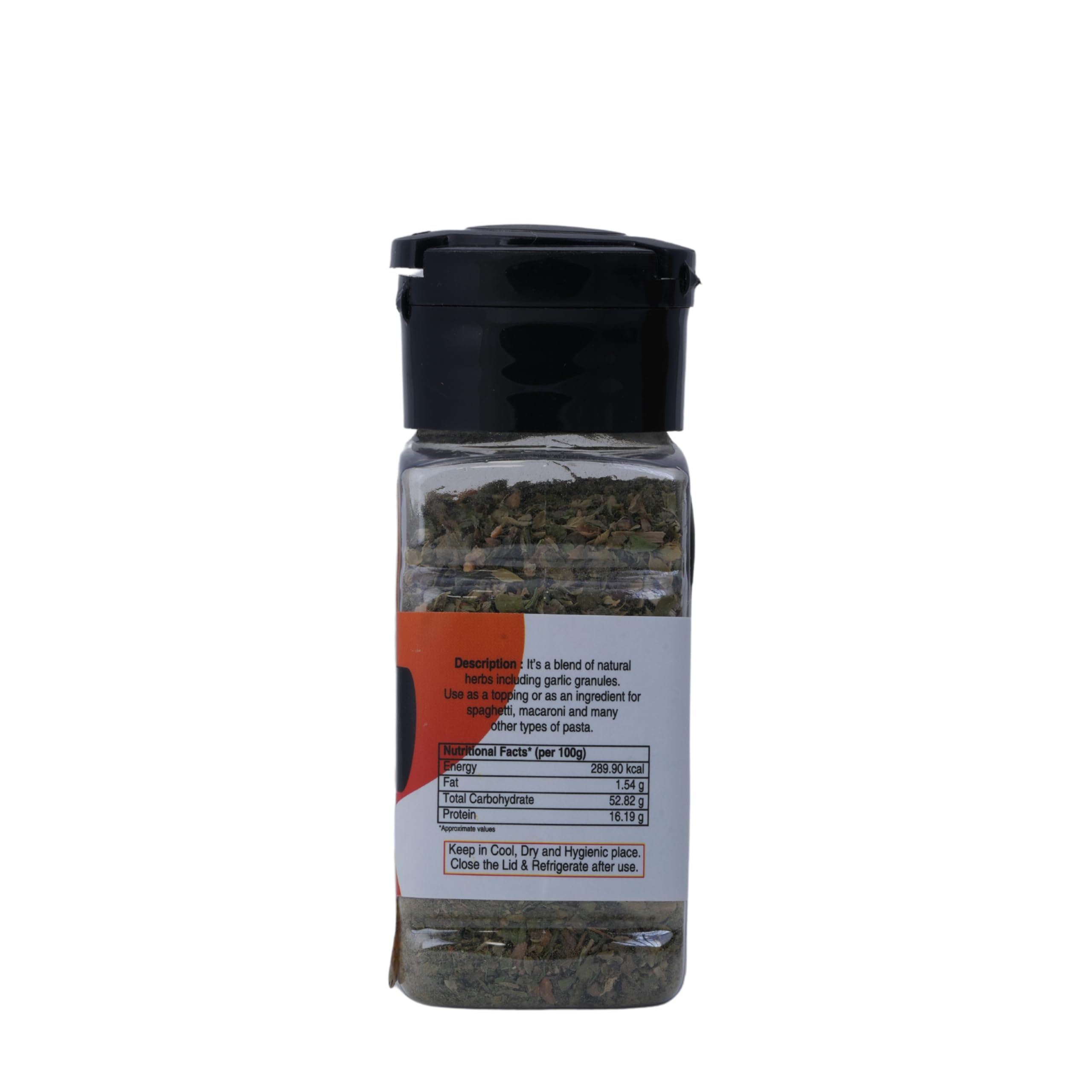 A blend of classic whole Italian herb such as oregano thyme basil this harmonius blend gives all the different flavours of herbs produced a flavour which is minty.