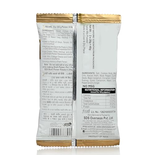 SELY SEALED PACKAGING: We understand the importance of preserving freshness. Our Shahi Paneer Masala comes in a 40g packet thoughtfully sealed to retain flavor and aroma. It's always ready to elevate your culinary creations.