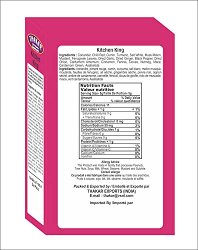 Thakar Kitchen King is a special mixture of spices that can enhance the taste of your favorite dishes. It is made from selected spices and is a necessary element in every kitchen. This seasoning can upgrade your everyday meals into delicious and amazing dishes. The packaging of Thakar Kitchen King is done carefully to preserve its freshness and natural aroma. With Thakar Kitchen King you can fully utilize the potential of your recipes.