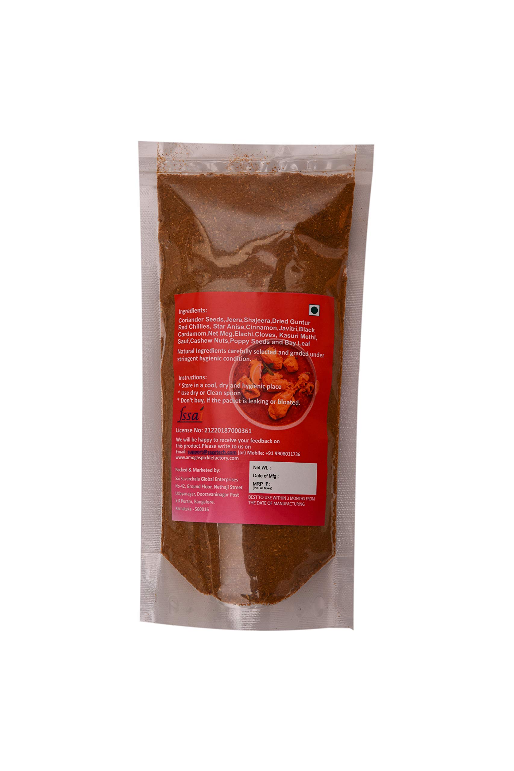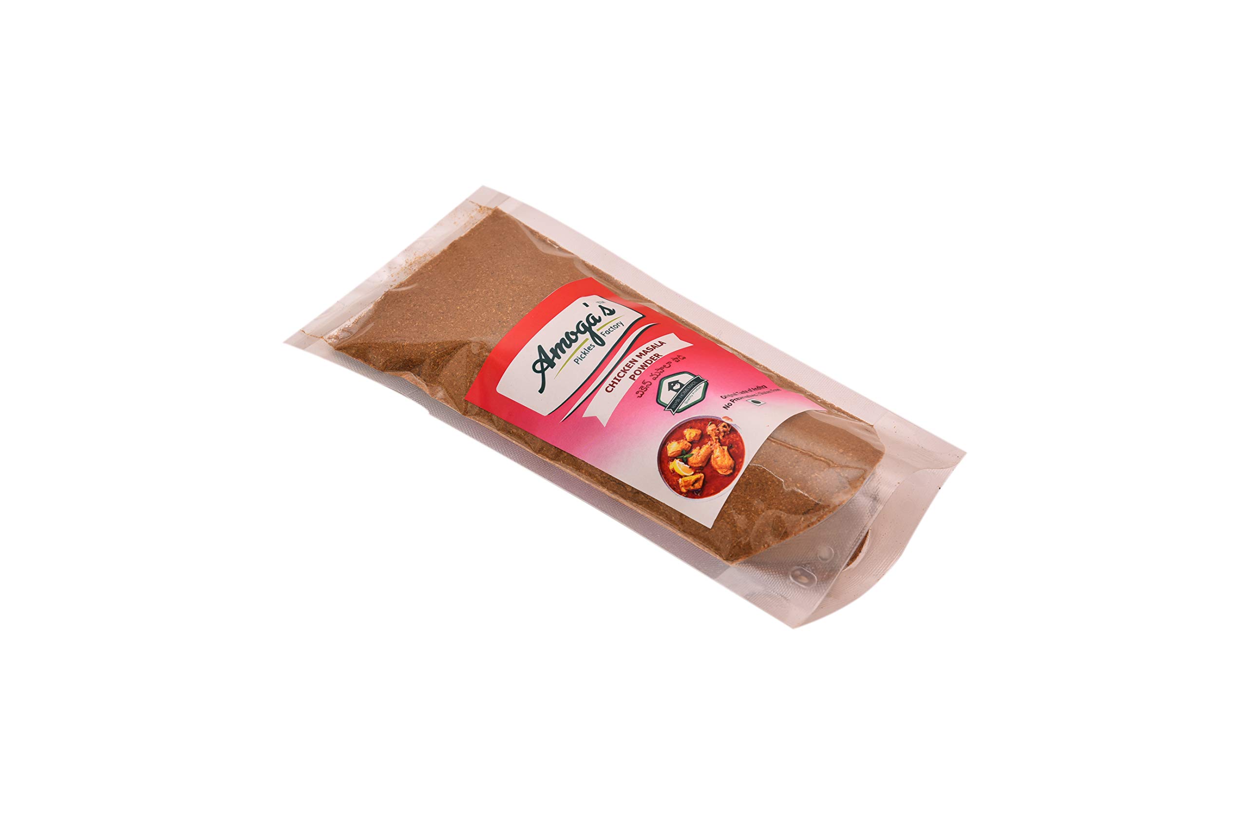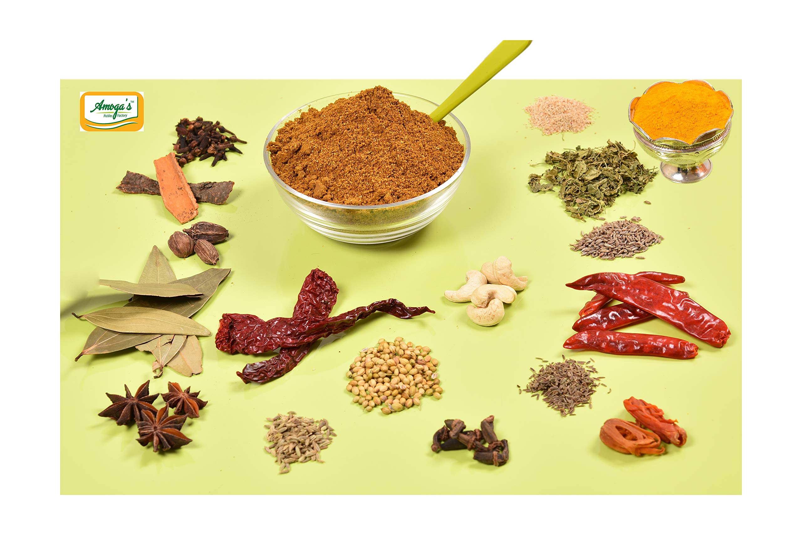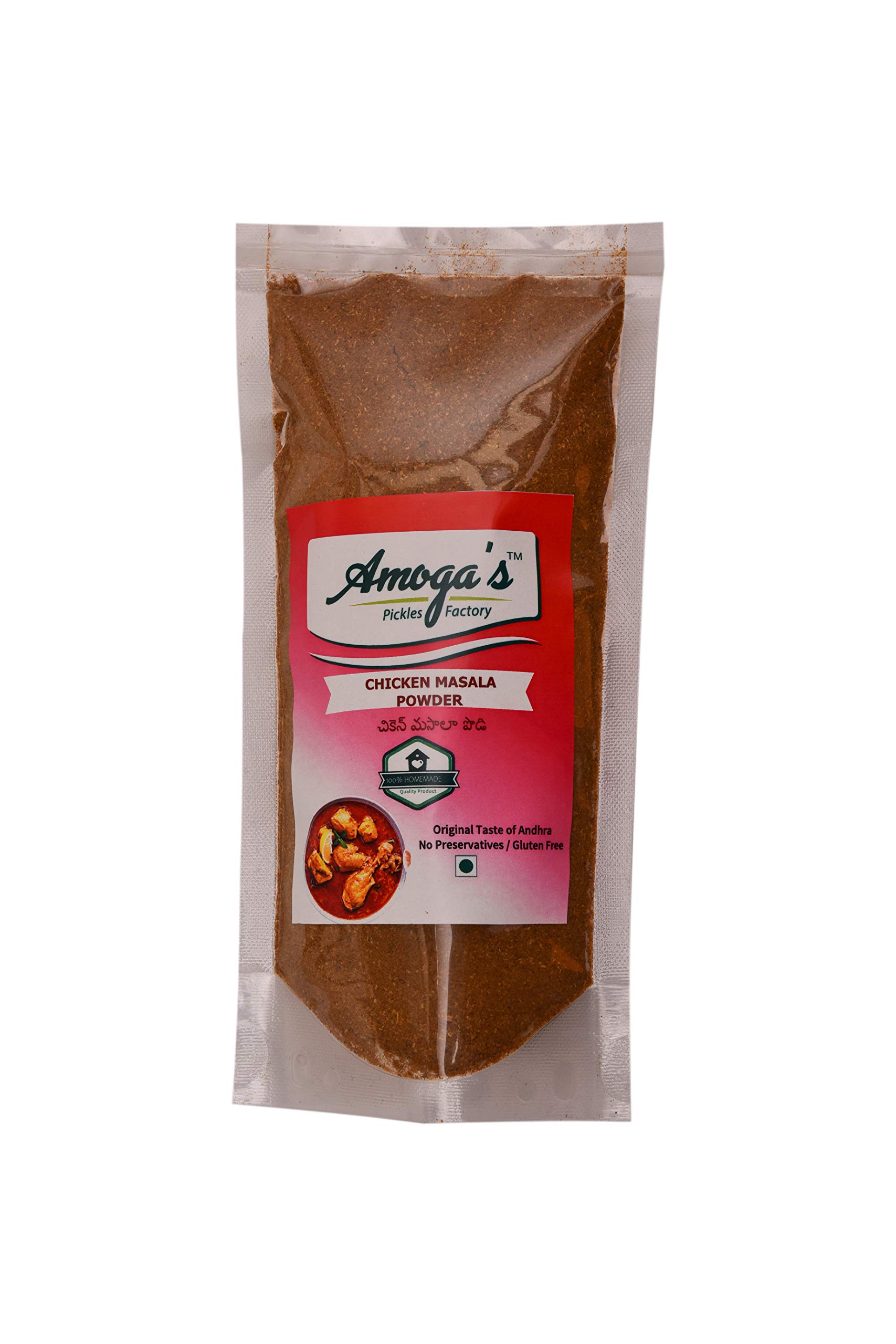 Amoga's Pickles Factory Chicken Masala is a mixture of ground spices used in preparation of indian foods.The taste depends on the Quality we use so we use the best in quality which were grown regionally.Ready made packed Masalas were used by most of the working women This Chicken masala goes well with South Indian and North Indian Chicken Curries.Cleaning & sun drying them and roasting is the important for hygienic reasons.so we follow the same procedure.We have researched a lot and finally made this blends of Chicken Masala.