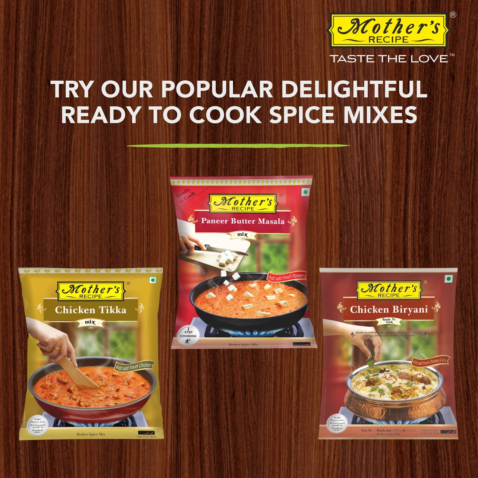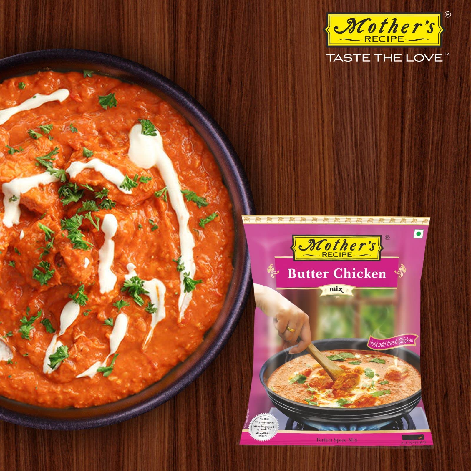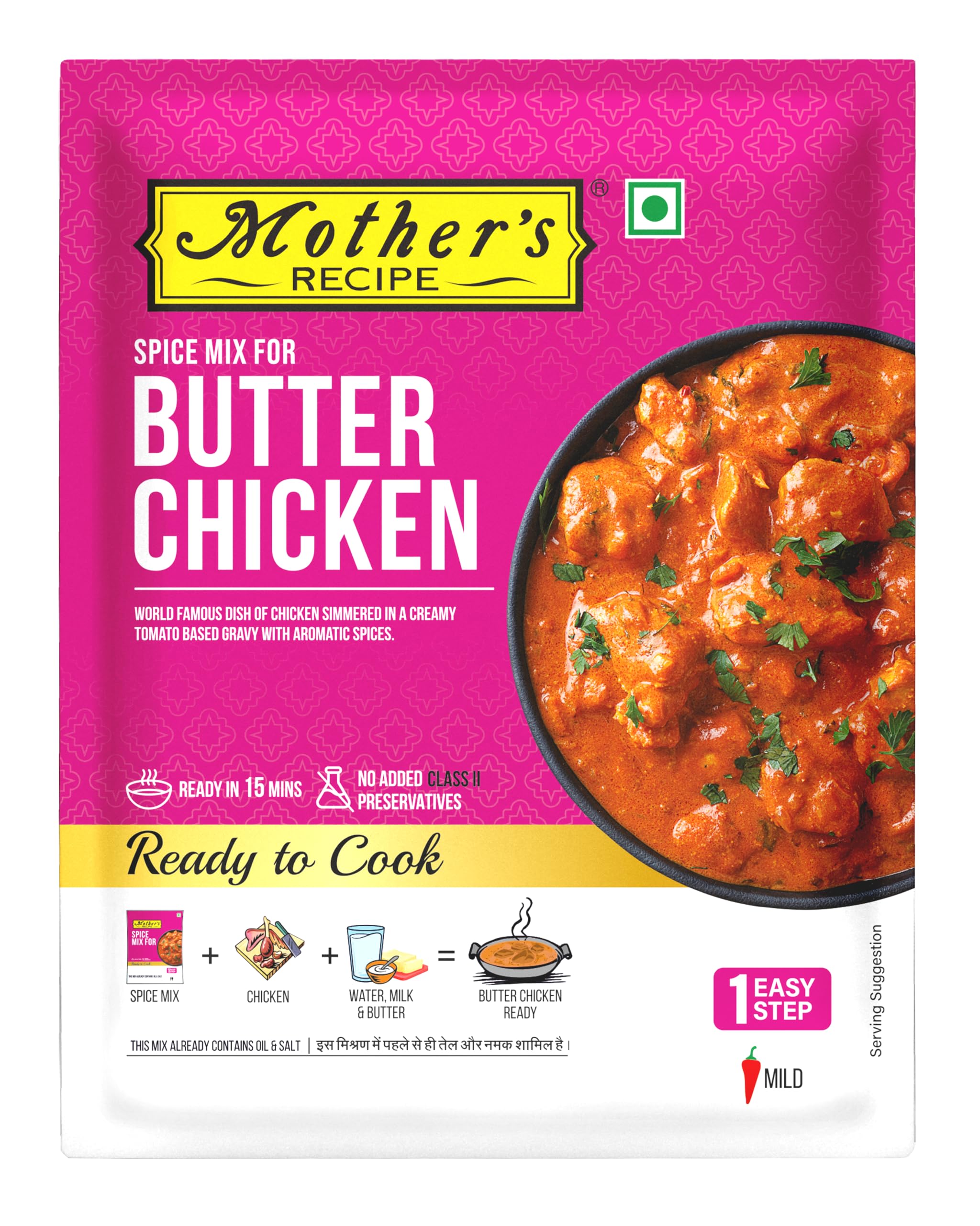 Ready-to-cook spice mix for preparing butter chicken. Serve hot with tandoori paratha rotis or steamed rice along with lime quarters and sliced onions.