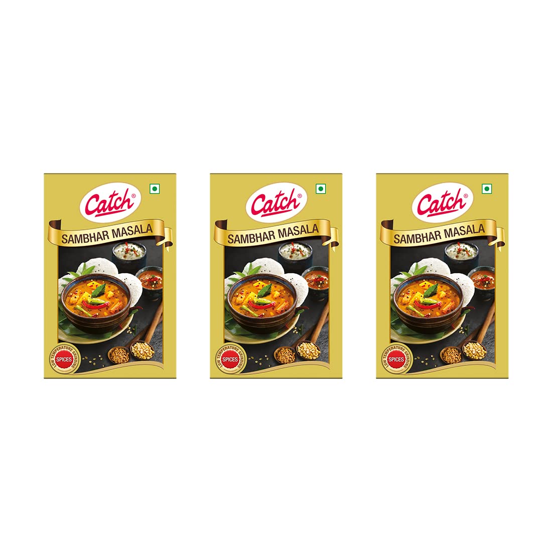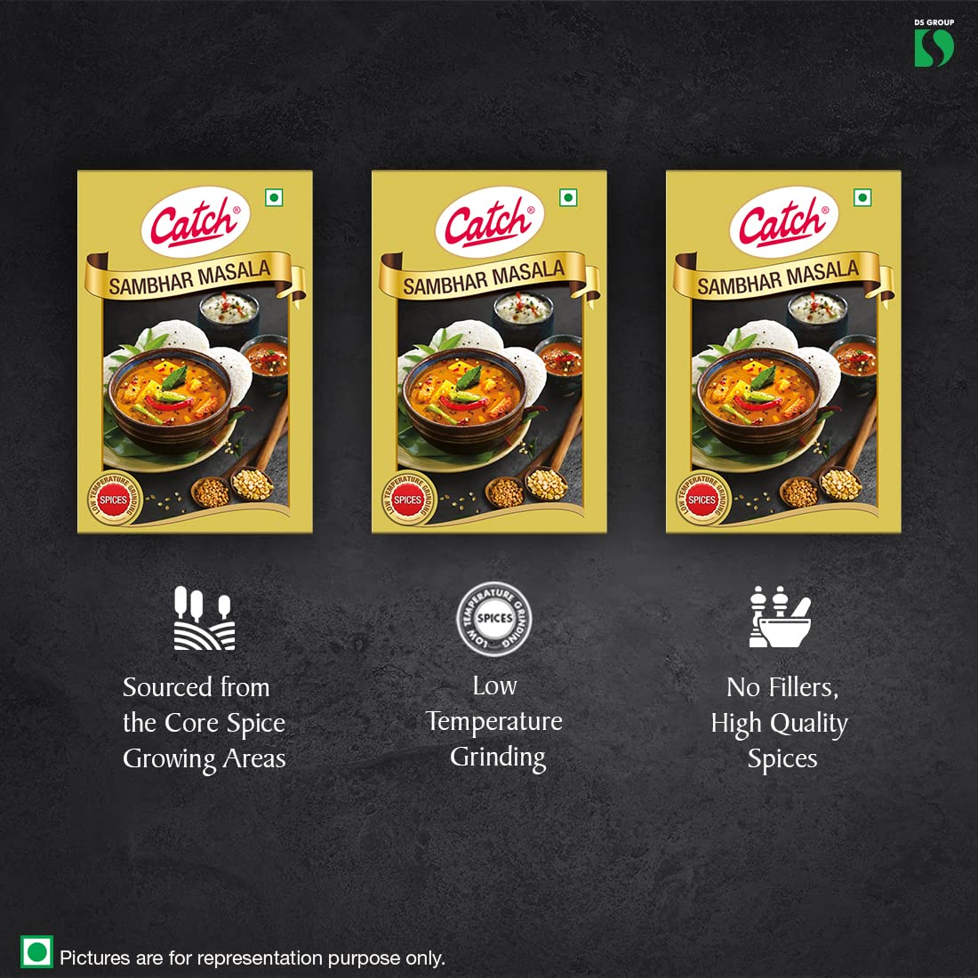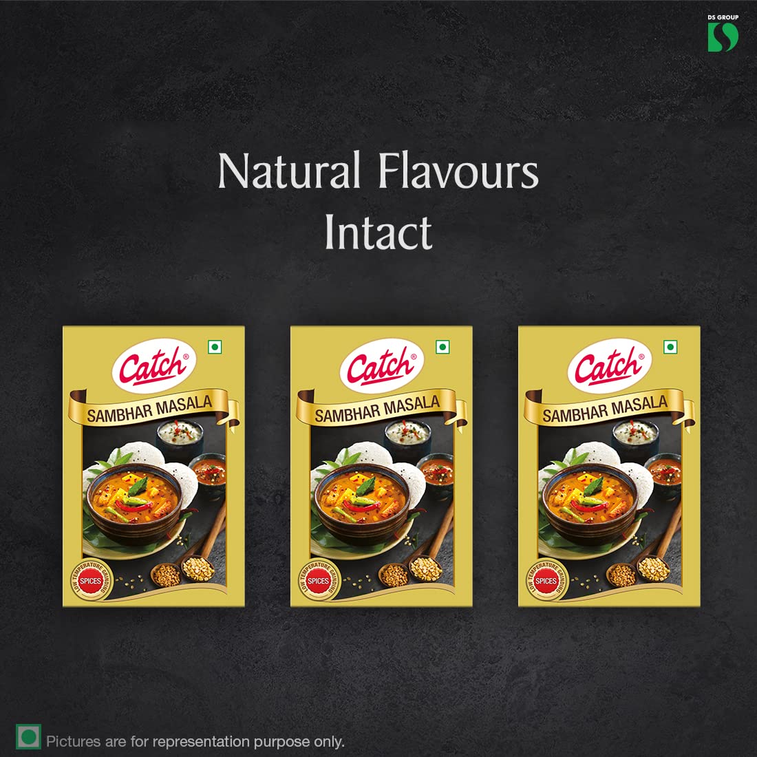 India is a land of distinct regional delicacies and Catch Spices makes sure that you taste the authentic taste of regional cuisines at the comfort of your home. The Catch Sambhar Masala Powder is scented with deep aromatic spices like coriander cumin fenugreek seeds black pepper spicy chilies and turmeric to give a perfect blend of flavours to your Sambhar. The Catch Sambar Masala Powder is sourced from the prime spice growing locations from India to ensure the highest quality and taste for your Sambhar dishes. Catch Spices are packed using state-of-the-art equipment ensuring minimal human contact. Catch Sambhar Masala is available in 50g and 100g packs giving you the flexibility of purchasing as per your needs. Catch Sambhar Masala does not contain any added fillers. Catch ka koi match nahi. 100% STORAGE INSTRUCTIONS: Keep in a cool & dry place.