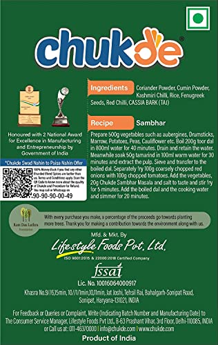 Rich in Flavour: Enjoy the rich taste of Chukde Sambhar Masala - Spice Blend Powder