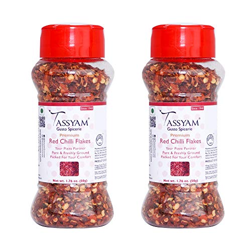 Tassyam Red Chili Flakes 100g (2X 50g) Dispenser Bottles